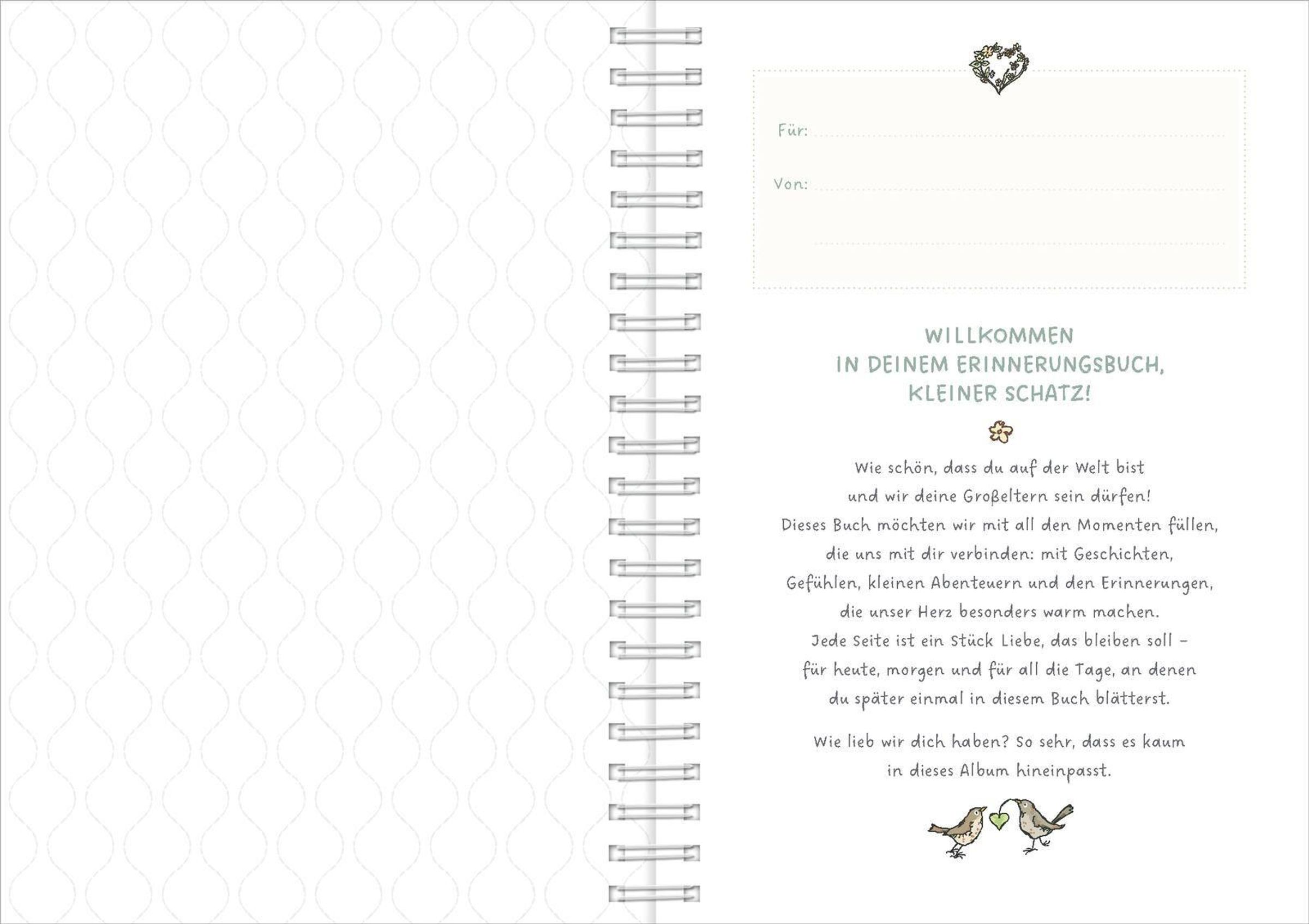 - **Einzigartiges Erinnerungsalbum:**Von Oma und Opa liebevoll ausgefüllt als bleibende Erinnerung für das Enkelkind