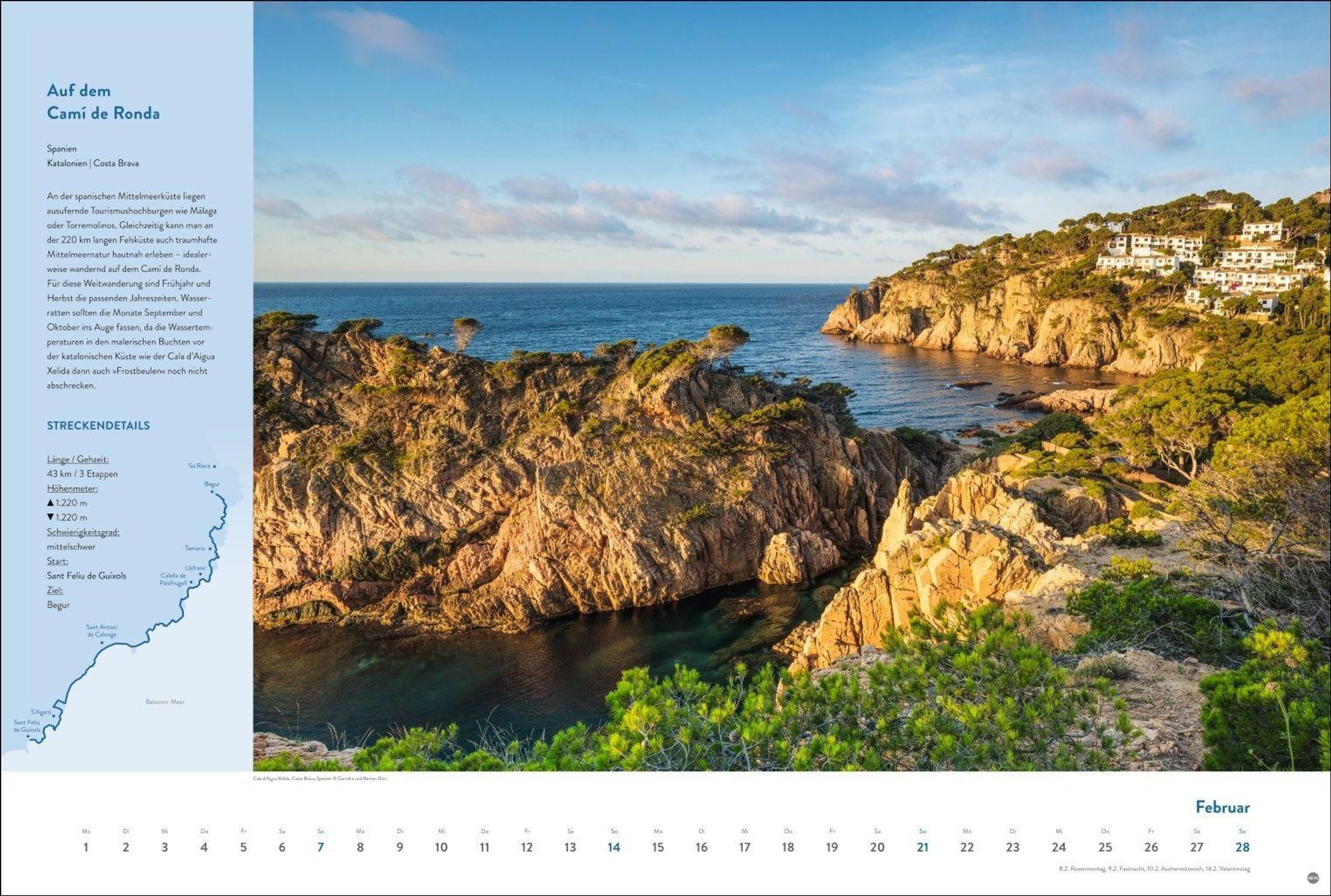 Costa Brava, Südtirol oder Bretagne: Mit dem Jahres-Wandkalender 2027 sind sie Monat für Monat auf den schönsten Fernwanderwegen Europas unterwegs