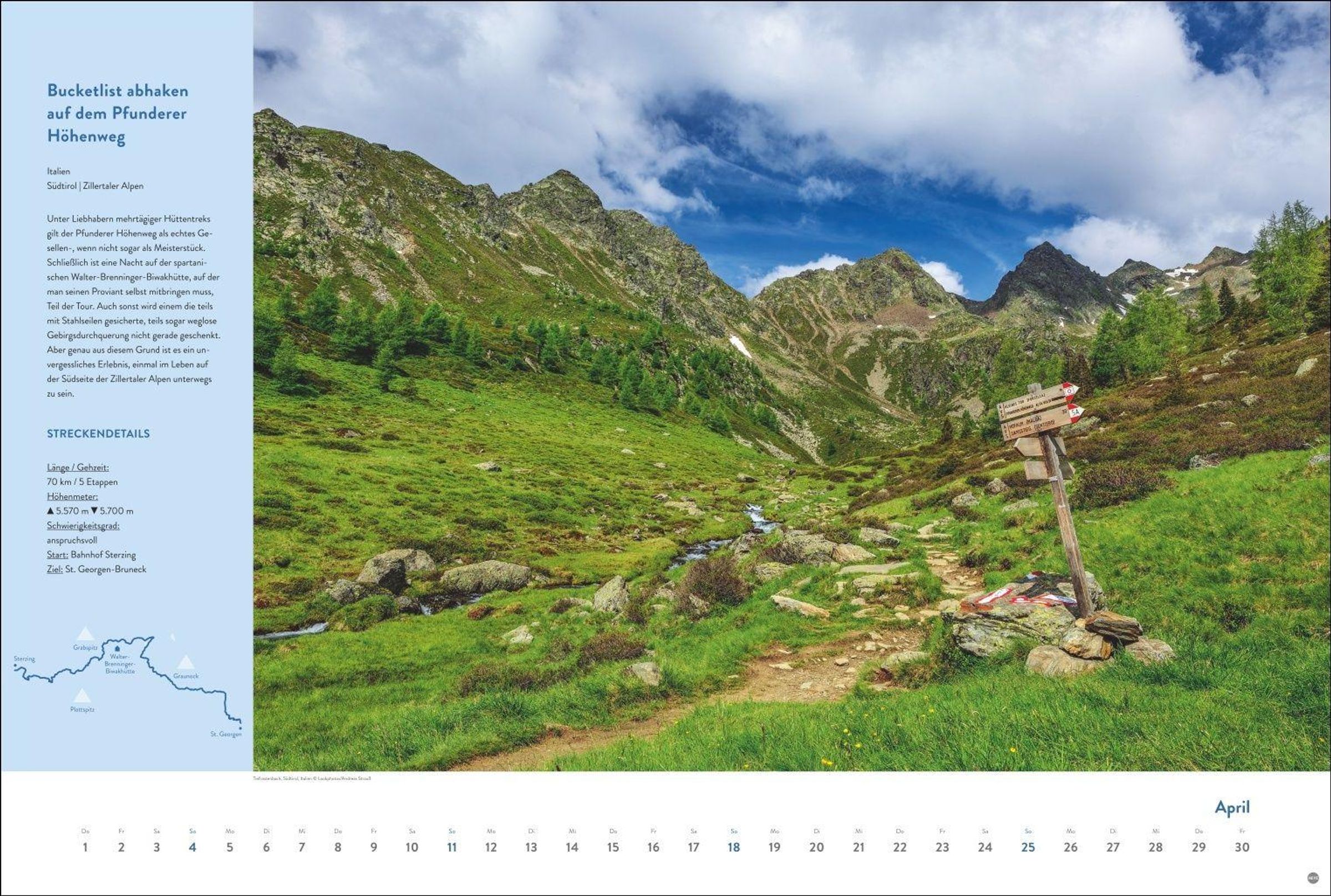 - Wandkalender im Querformat 58 x 39 cm, der zu Touren auf Europas Wanderrouten einlädt: Stimmungsvolle Landschaften und Strecken-Infos, inkl. kleiner Karten