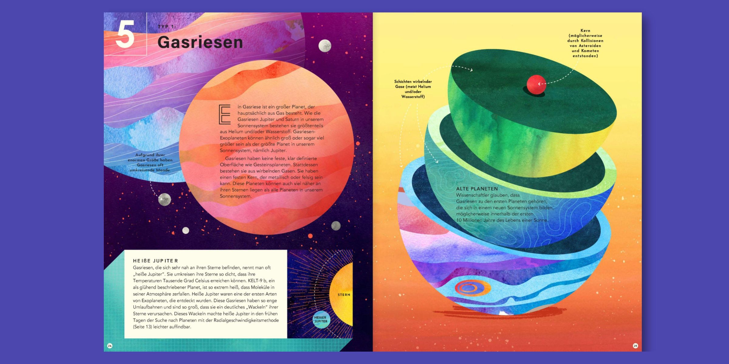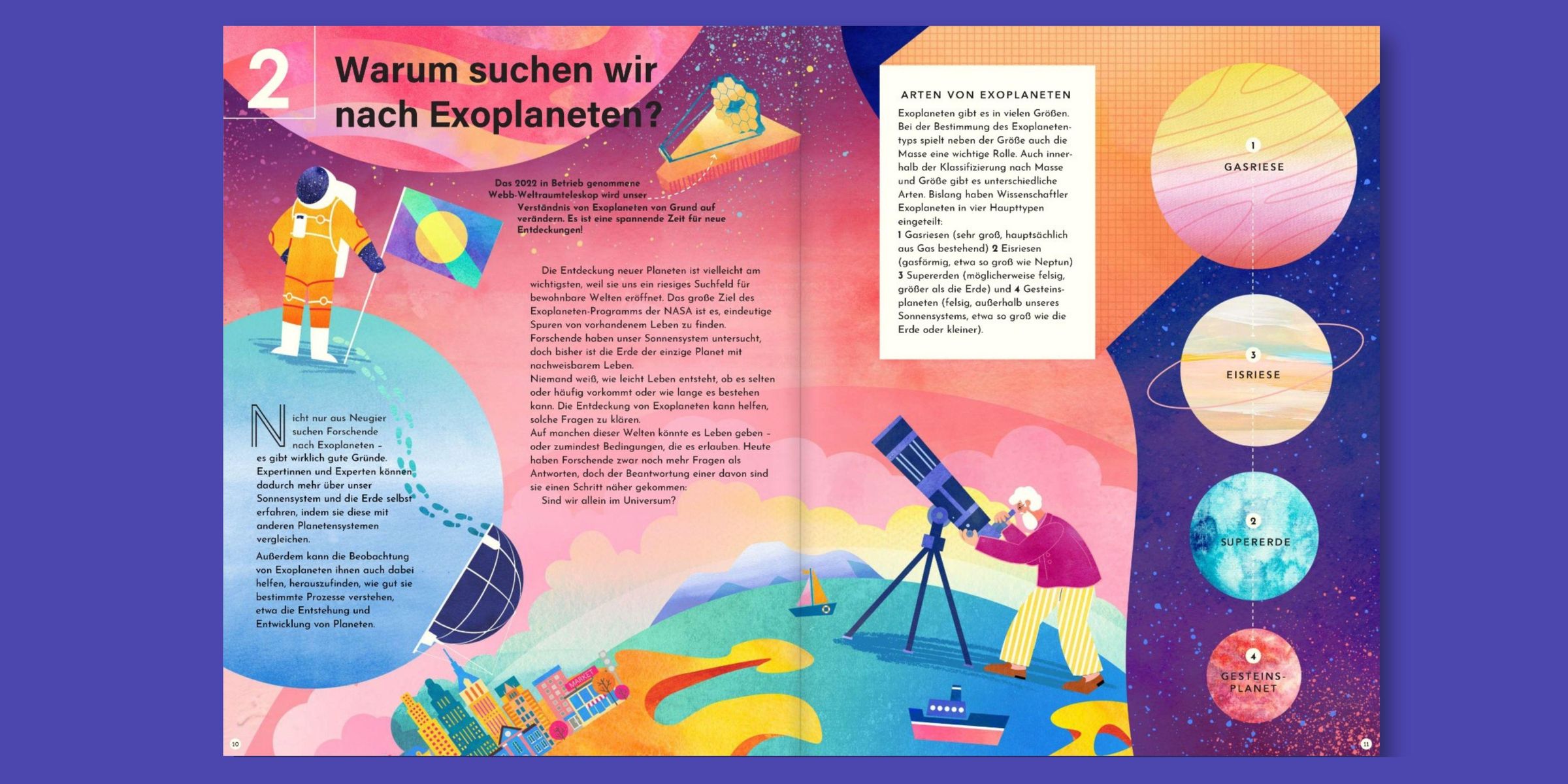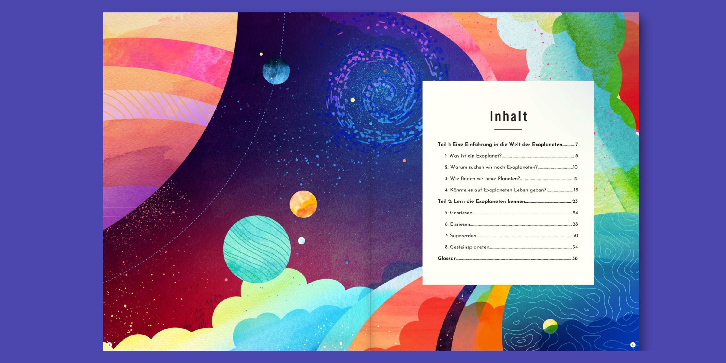 Exoplaneten sind Planeten, die außerhalb unseres Sonnensystems liegen. Über 6000 von ihnen hat die NASA bisher bestätigt, und es werden immer mehr! In diesem einzigartigen Kindersachbuch erfahren wir, warum Forscher: innen nach ihnen suchen, mit welchen Methoden man sie aufspürt und wo außerirdisches Leben existieren könnte. Spektakulär farbenfrohe Illustrationen und spannende Kurztexte vermitteln hochaktuelle Forschungsergebnisse. Mit Steckbriefen, die einen Überblick über die berühmtesten Exoplaneten und ihre Eigenschaften geben.