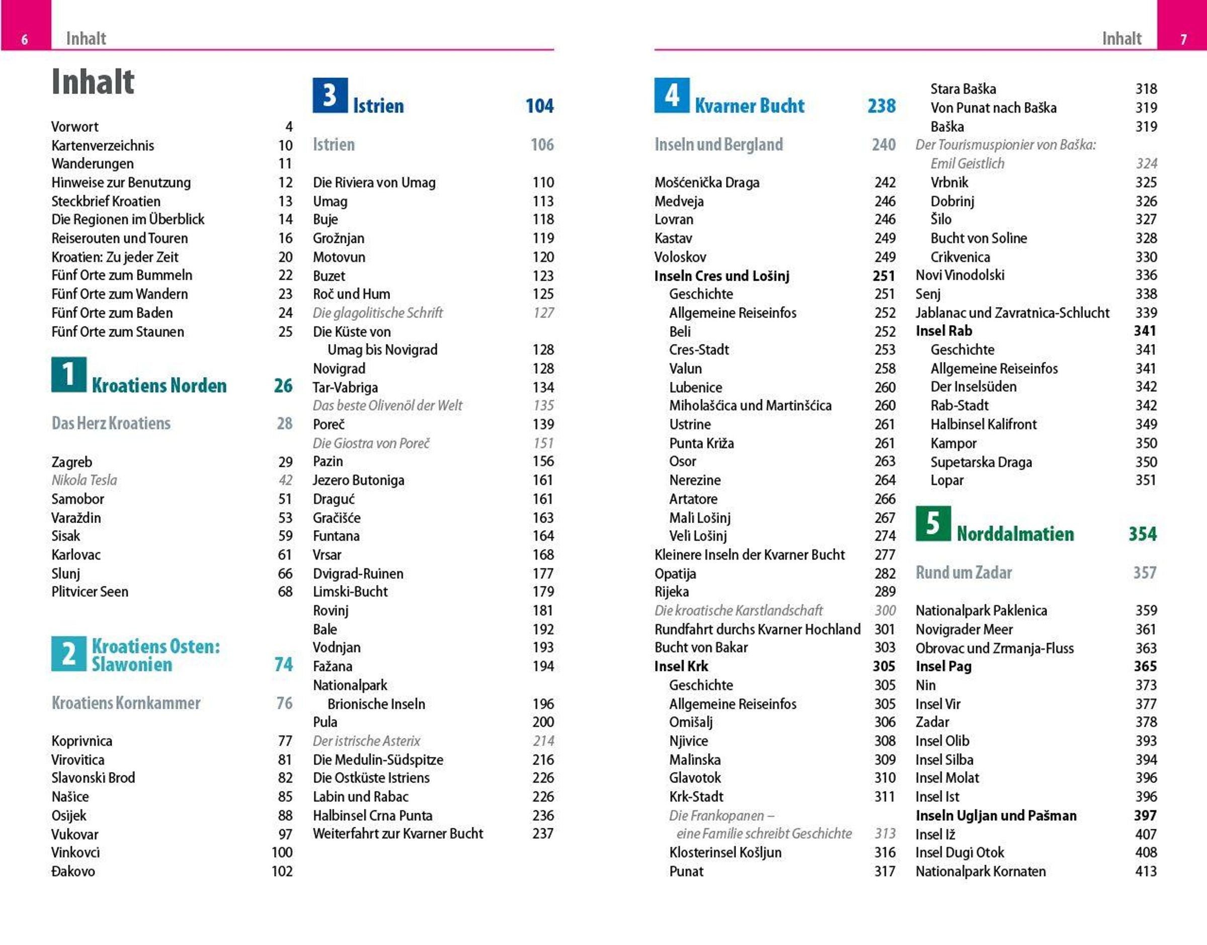 Übersichtsseiten mit den bedeutendsten Regionen im Überblick: Kroatiens Norden, Slawonien, Istrien, Kvarner Bucht, Norddalmatien, Zentraldalmatien und Süddalmatien