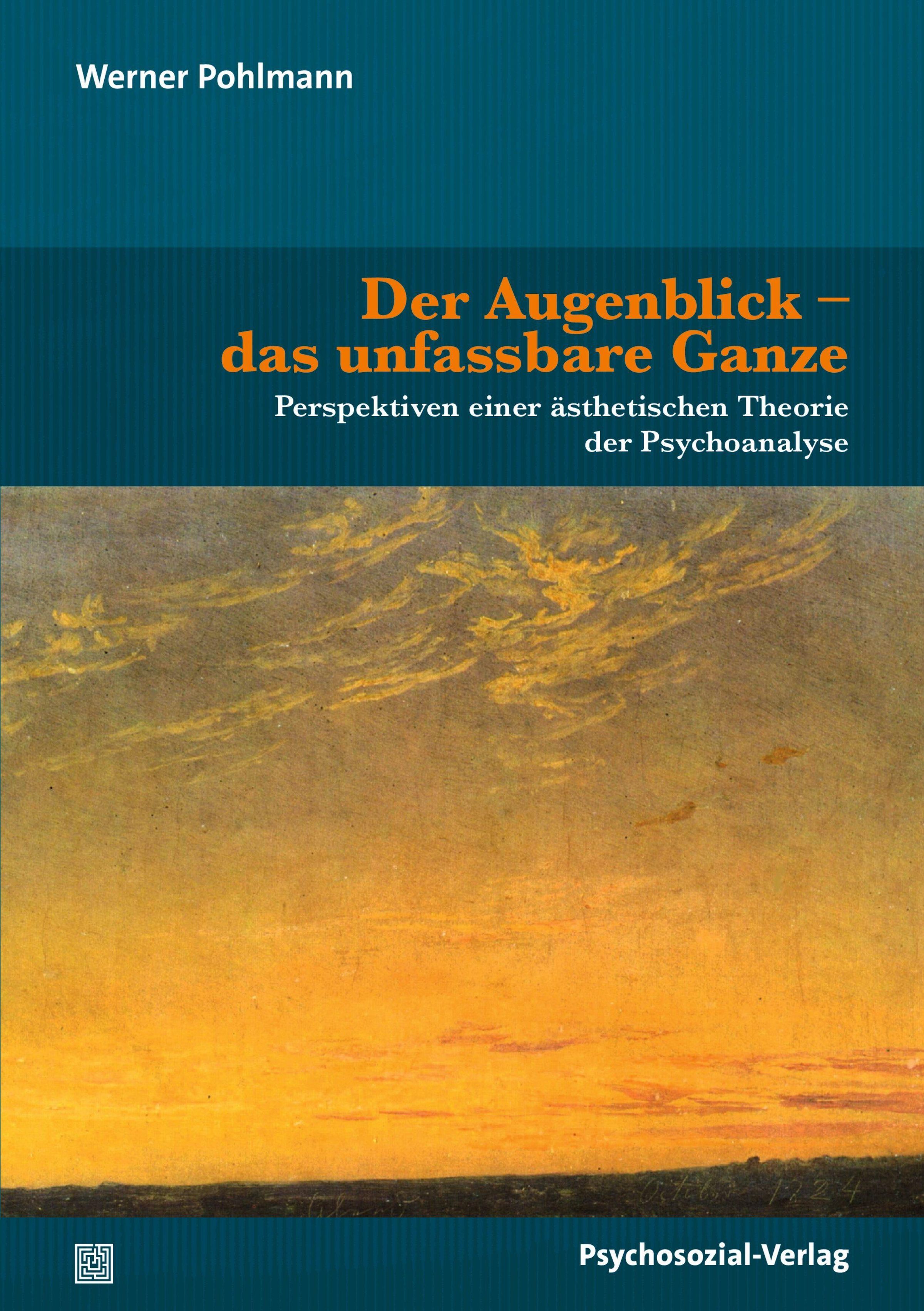 Text "Der Augenblick – das unfassbare Ganze". Darunter eine Abendlandschaft in warmen, gelben Tönen., Buch