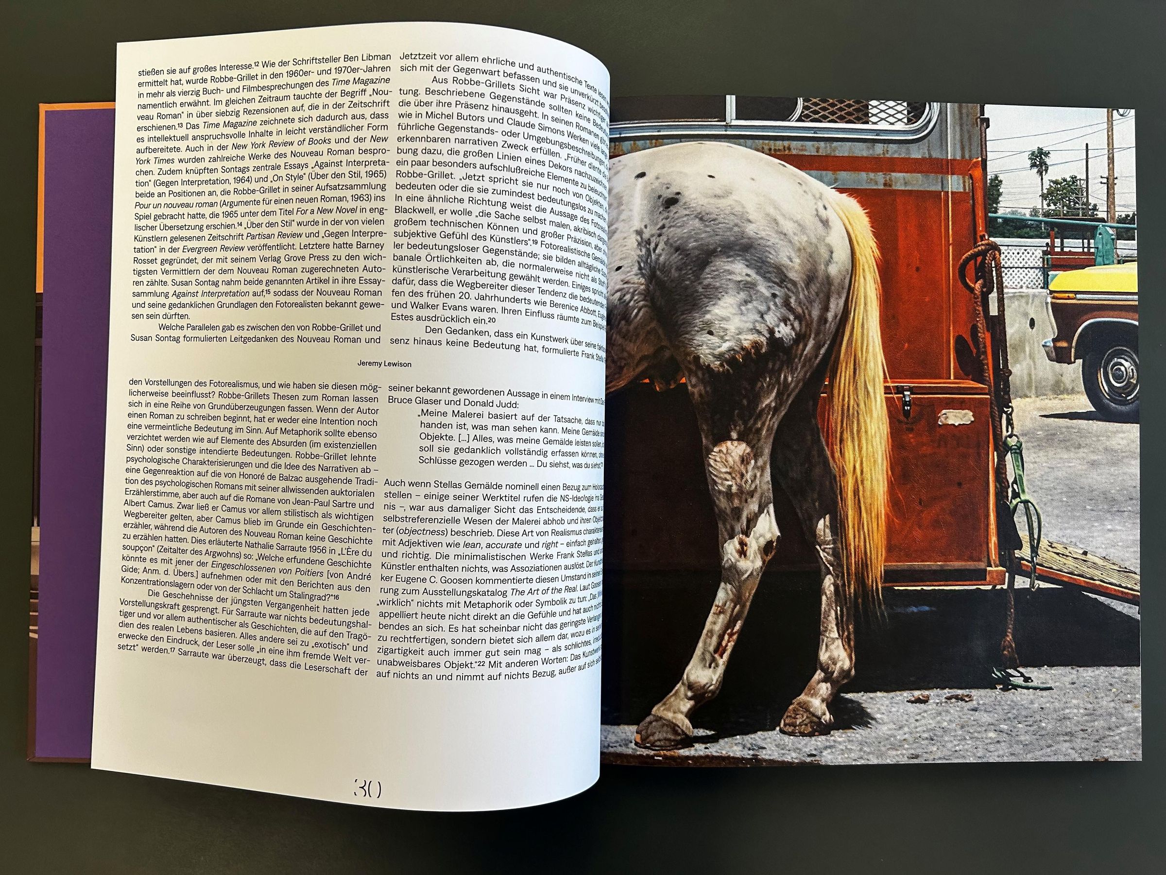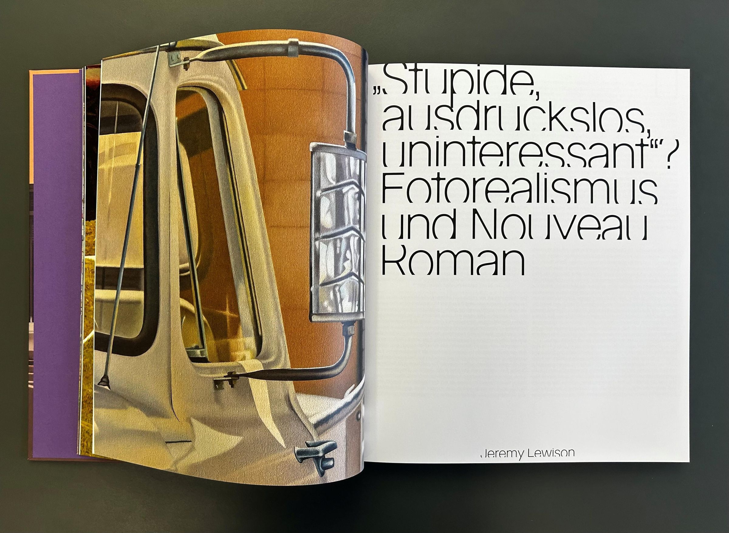 Das Buch ist eine Hommage an die Illusionskraft der Malerei und zugleich ein globaler Spaziergang durch die moderne Alltagskultur: Bilder von chromblitzenden Fahrzeugen in bürgerlichen Wohngegenden, knallbunten Candys, glänzend schimmernden Lippenstifthüllen, oft menschenleeren Schnellrestaurants oder grellen Reklamemotiven. Sie alle bestechen durch technische Brillanz und eine verblüffend präzise Wirklichkeitsnähe, die den Wettstreit mit der Fotografie sucht und sich bewusst von der Abstraktion abwendet.