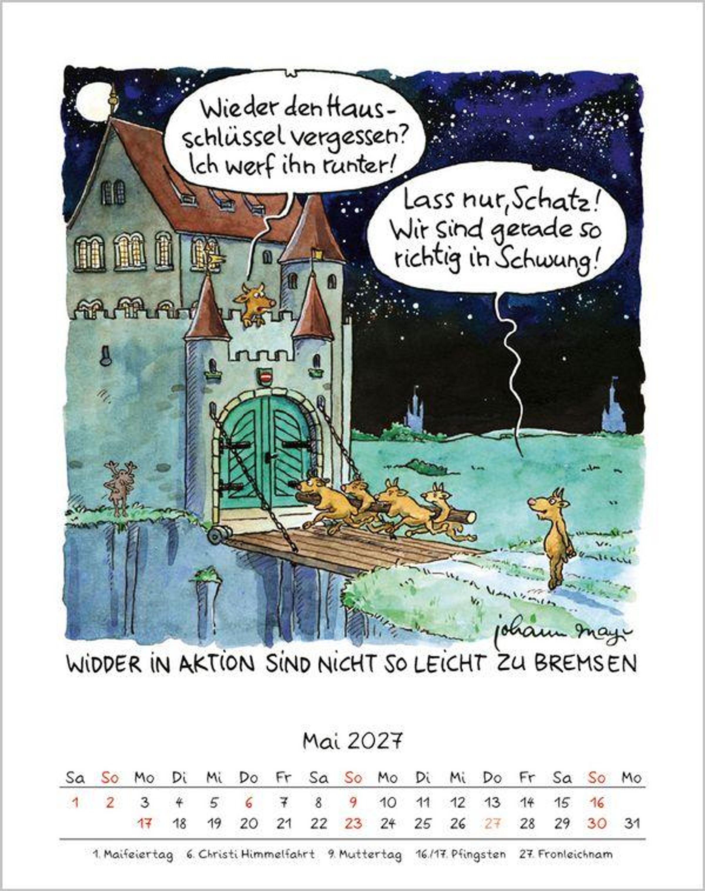 Der erfolgreiche Sternzeichenkalender mit charmanten und witzigen Cartoons für jeden Monat von Johann Mayr.