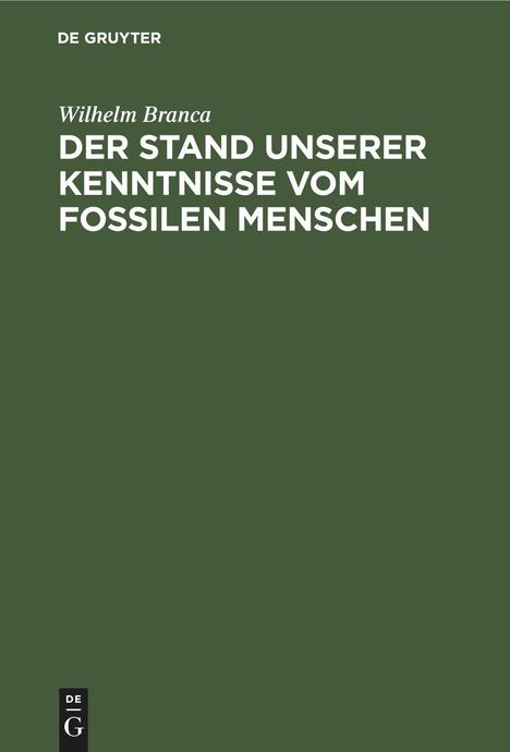 Wilhelm Branca: Der Stand unserer Kenntnisse vom fossilen Menschen, Gebunden