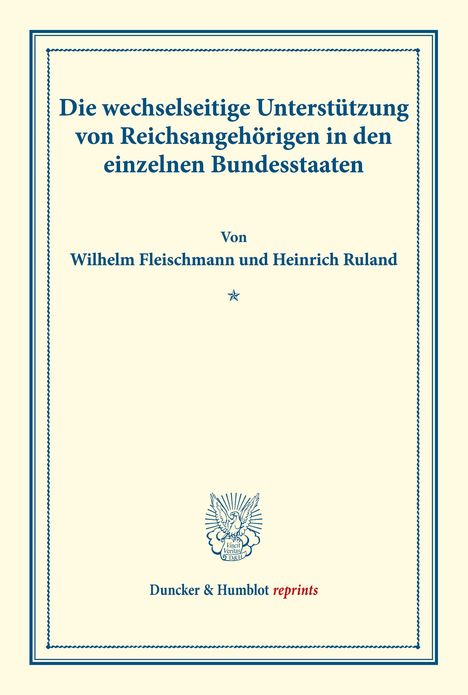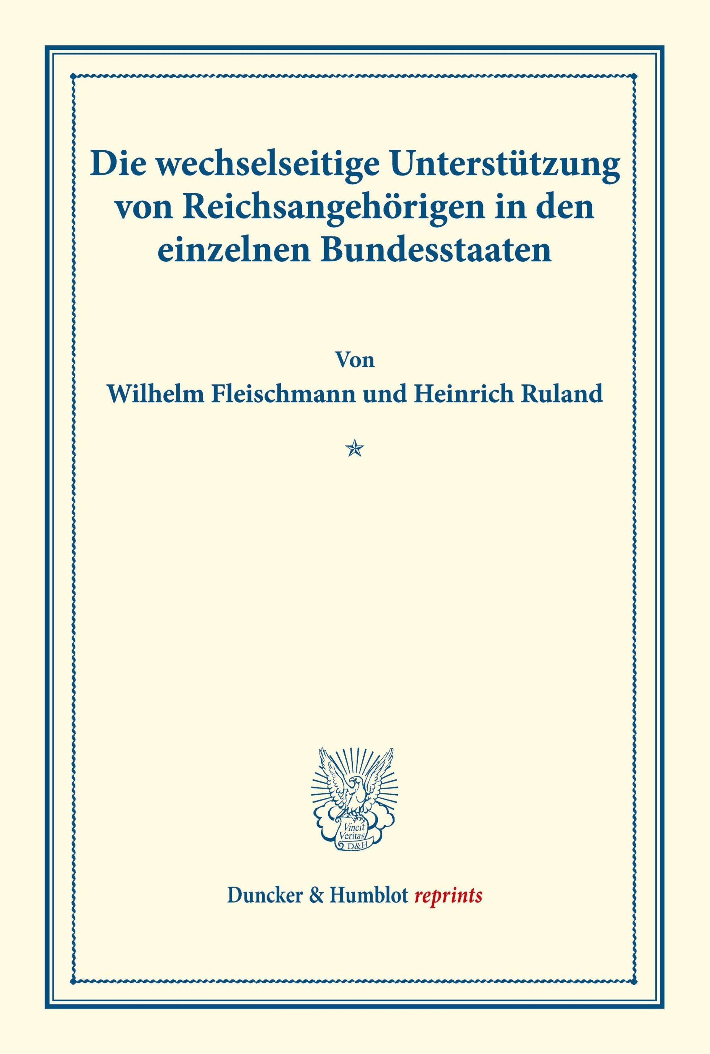 Wilhelm Fleischmann: Die wechselseitige Unterstützung von Reichsangehörigen in den einzelnen Bundesstaaten., Kartoniert / Broschiert