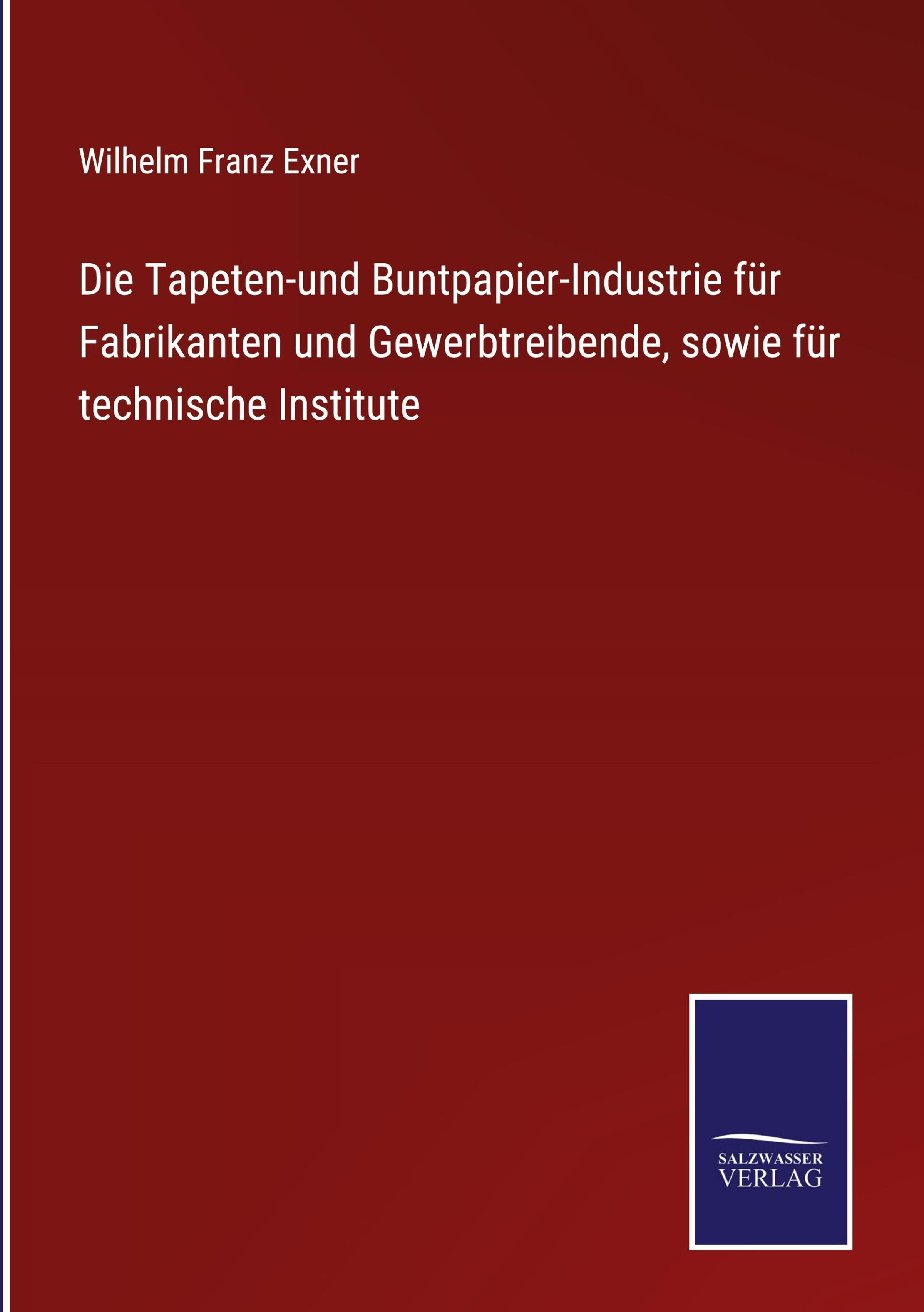Wilhelm Franz Exner: Die Tapeten-und Buntpapier-Industrie für Fabrikanten und Gewerbtreibende, sowie für..., Gebunden