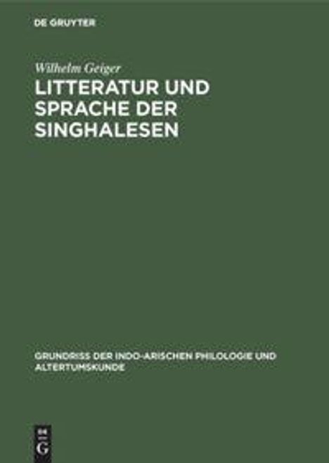 Wilhelm Geiger: Litteratur und Sprache der Singhalesen, Buch, Buch