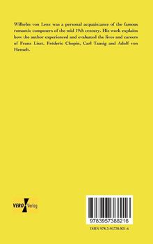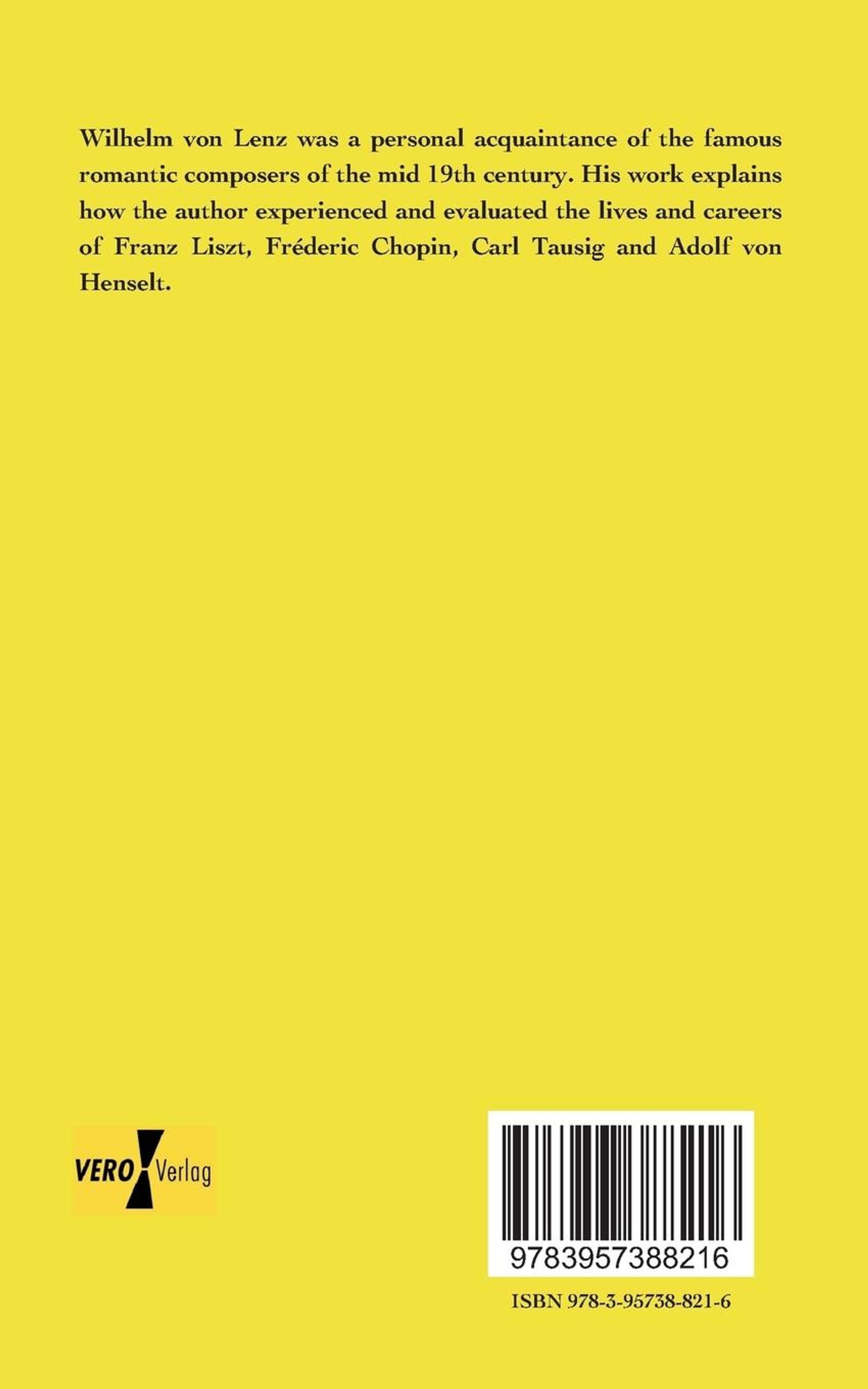 Wilhelm von Lenz was a personal acquaintance of the famous romantic composers of the mid 19th century. His work explains how the author experienced and evaluated the lives and careers of Franz Liszt, Fréderic Chopin, Carl Tausig and Adolf von Henselt.