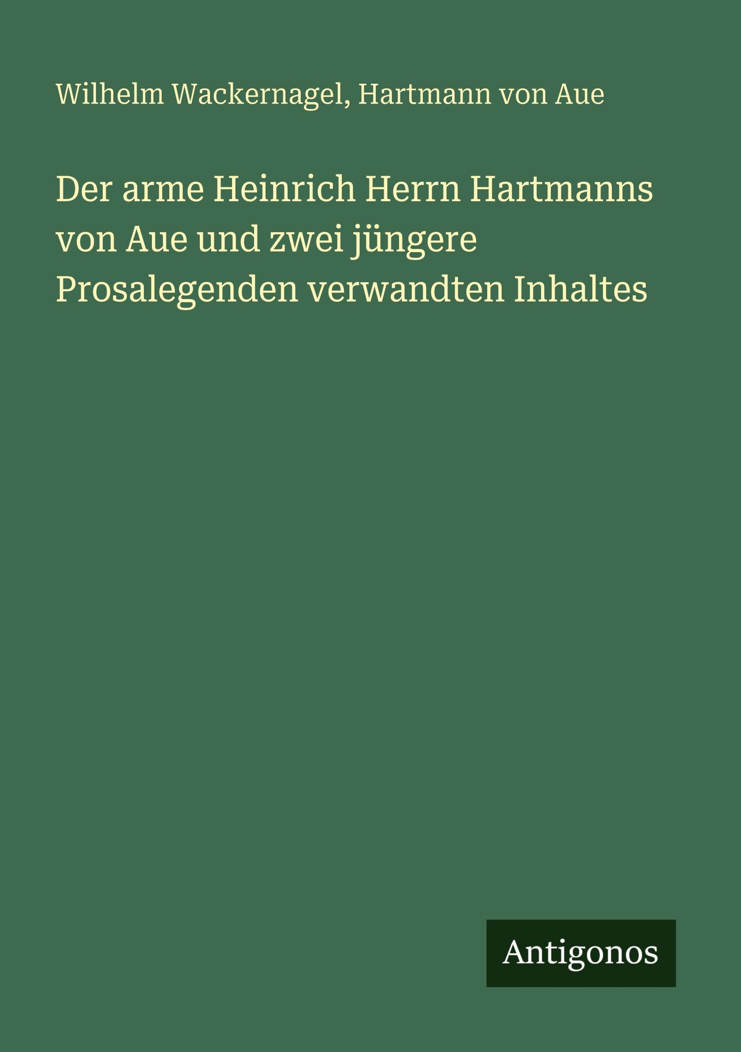 Wilhelm Wackernagel: Der arme Heinrich Herrn Hartmanns von Aue und zwei jüngere Prosalegenden verwandten Inhaltes, Kartoniert / Broschiert