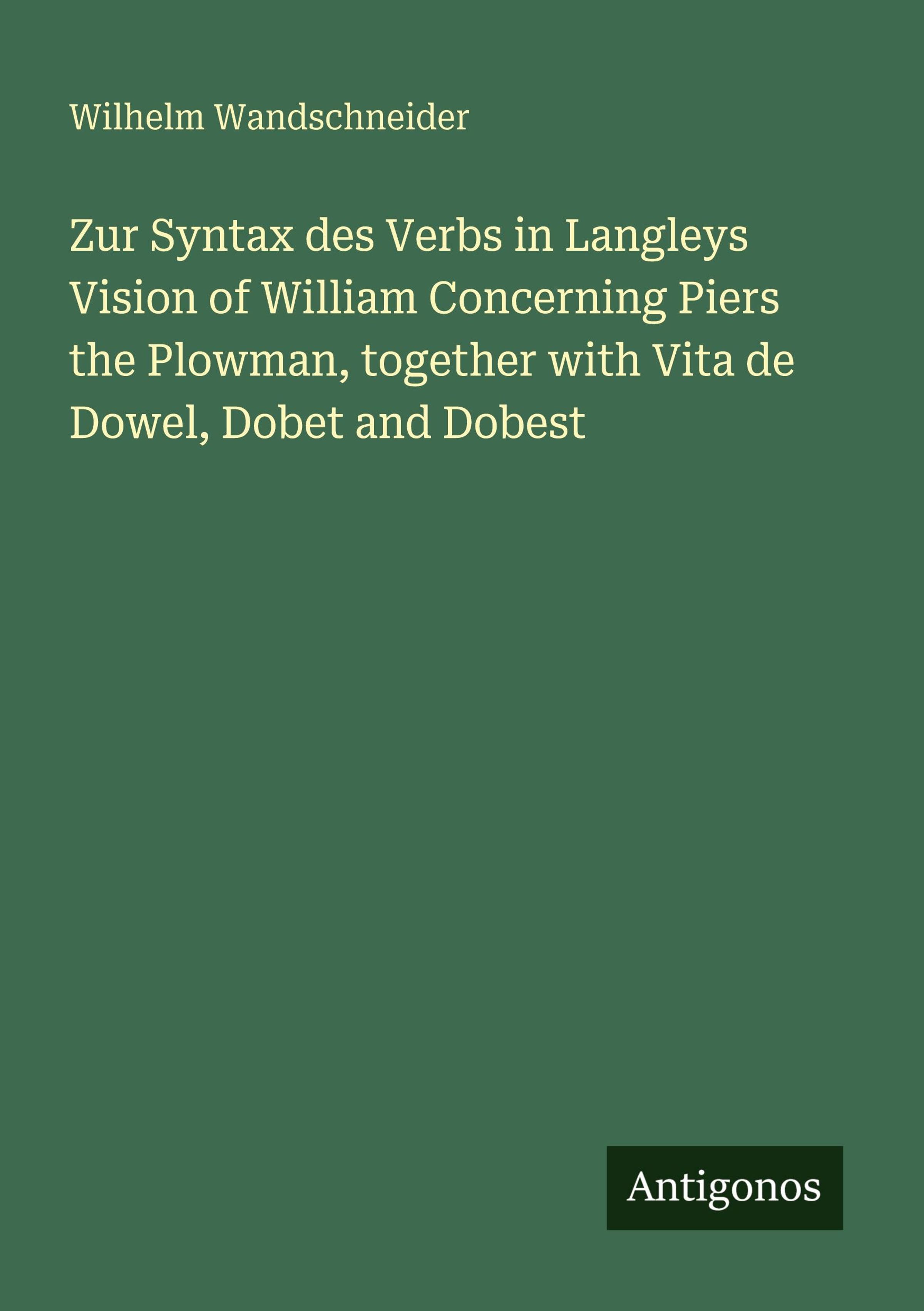 Zur Syntax des Verbs in Langleys Vision of William Concerning Piers the Plowman, together with Vita de Dowel, Dobet and Dobest