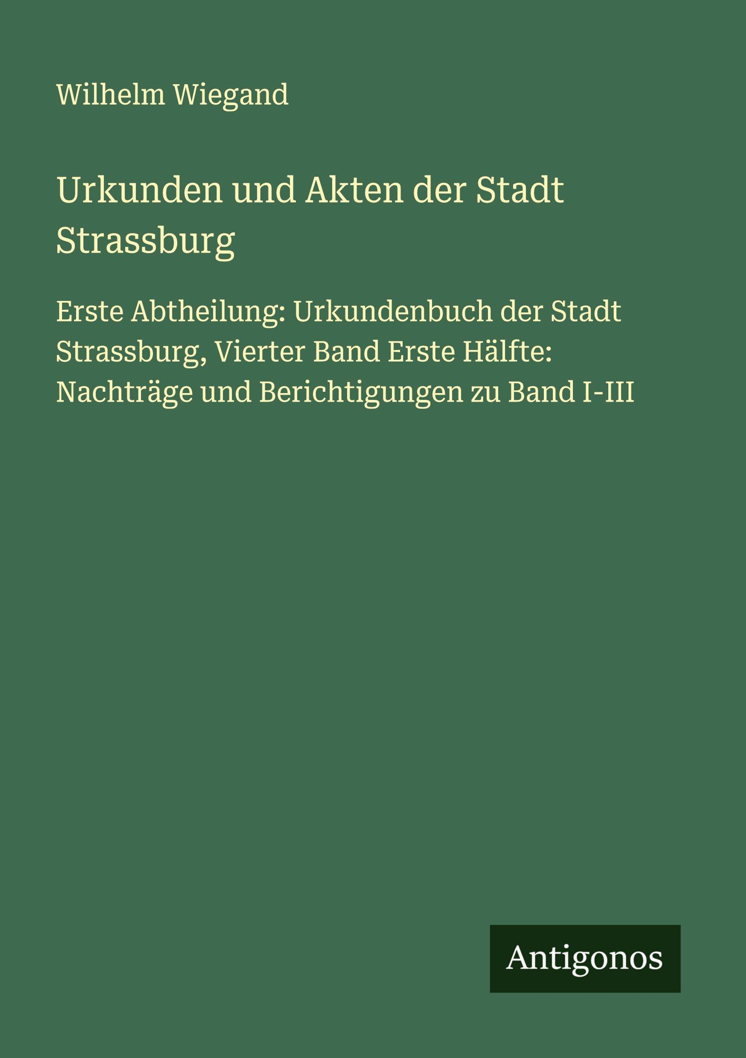 • Erste Abtheilung: Urkundenbuch der Stadt Strassburg, Vierter Band Erste Hälfte: Nachträge und Berichtigungen zu Band I-III