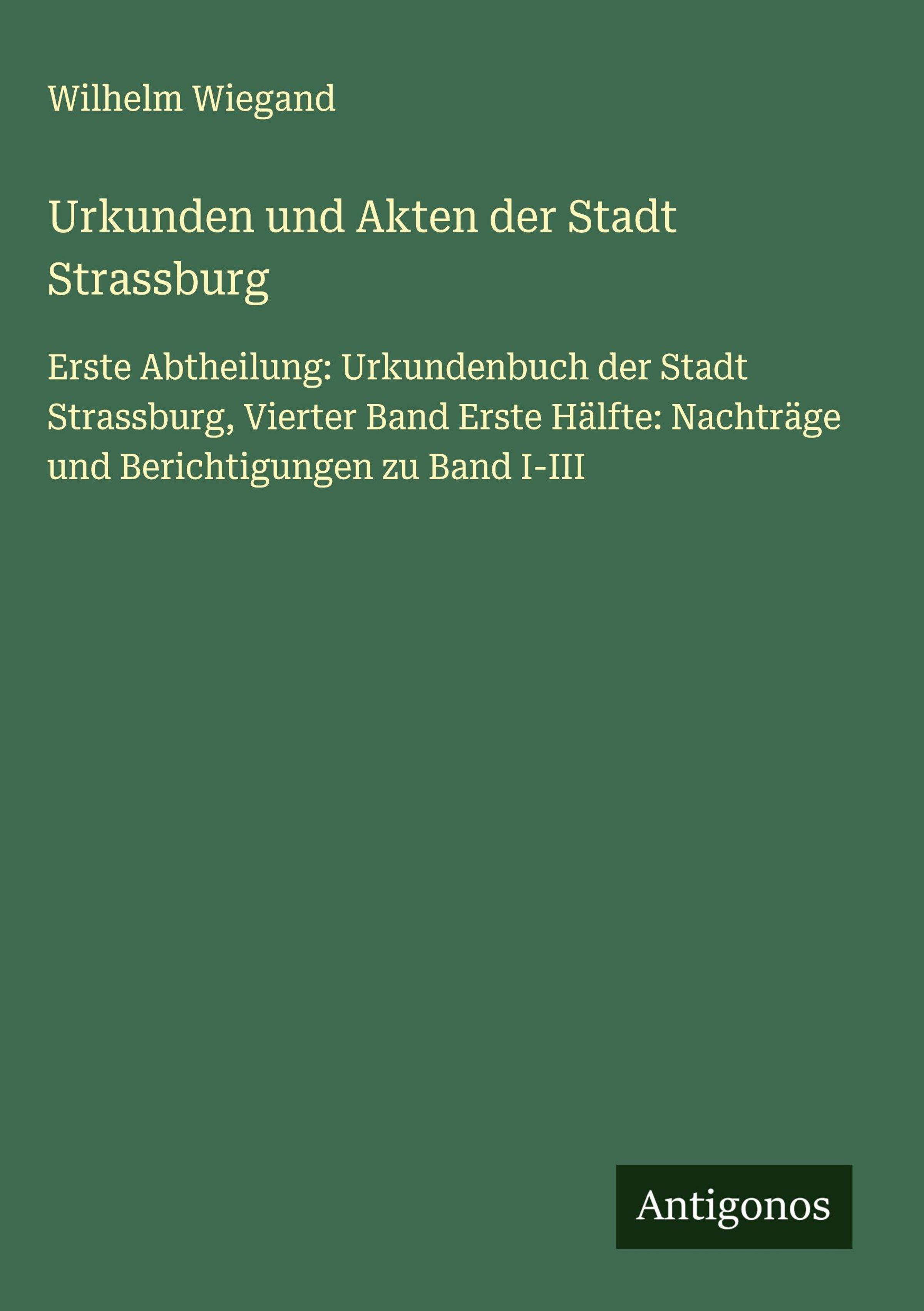 - Erste Abtheilung: Urkundenbuch der Stadt Strassburg, Vierter Band Erste Hälfte: Nachträge und Berichtigungen zu Band I-III