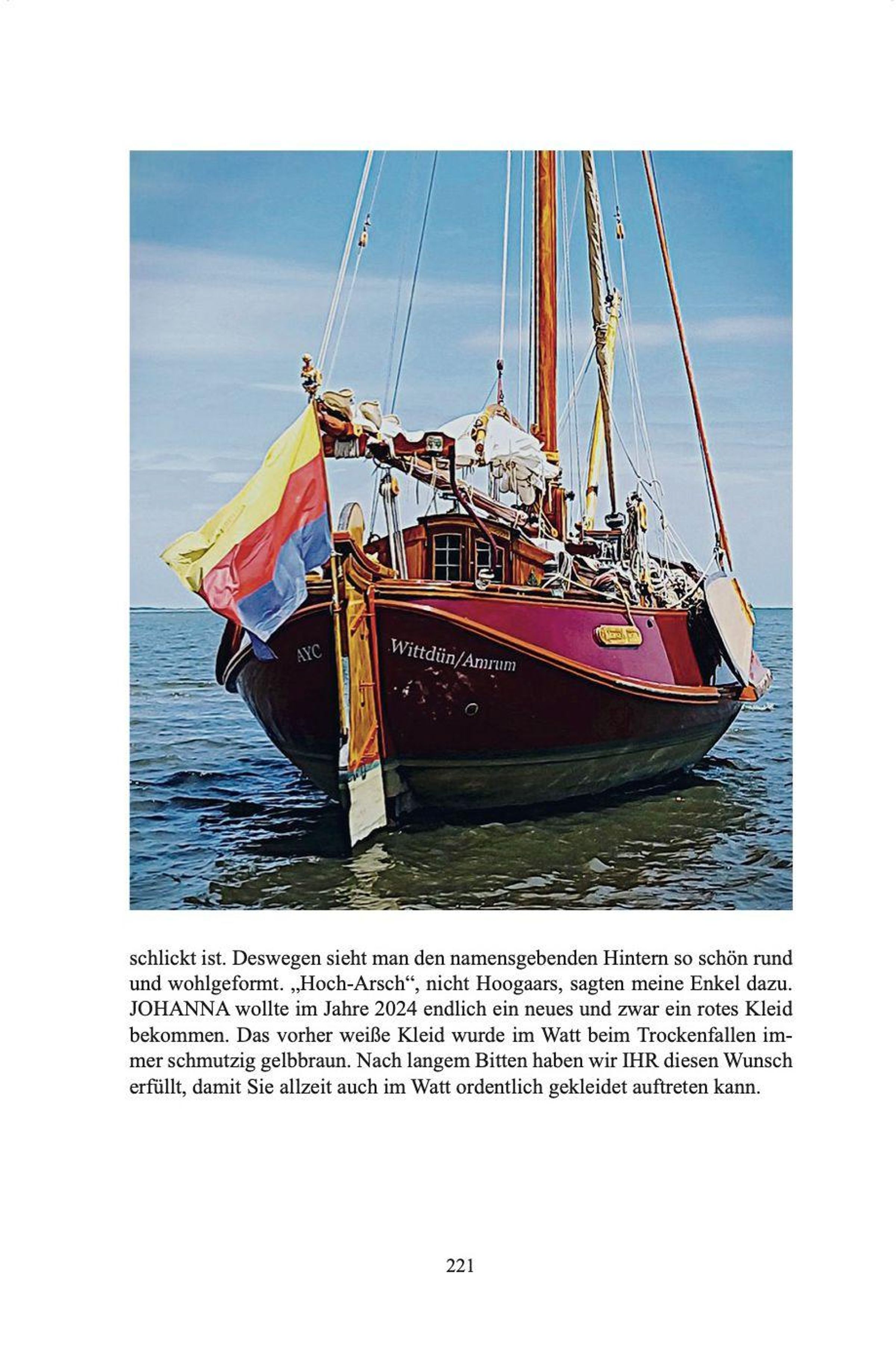 "JOHANNA von AMRUM", "Willem Ruempler". Segelboot im ruhigen Wasser vor blauem Himmel mit wenigen Wolken., Buch