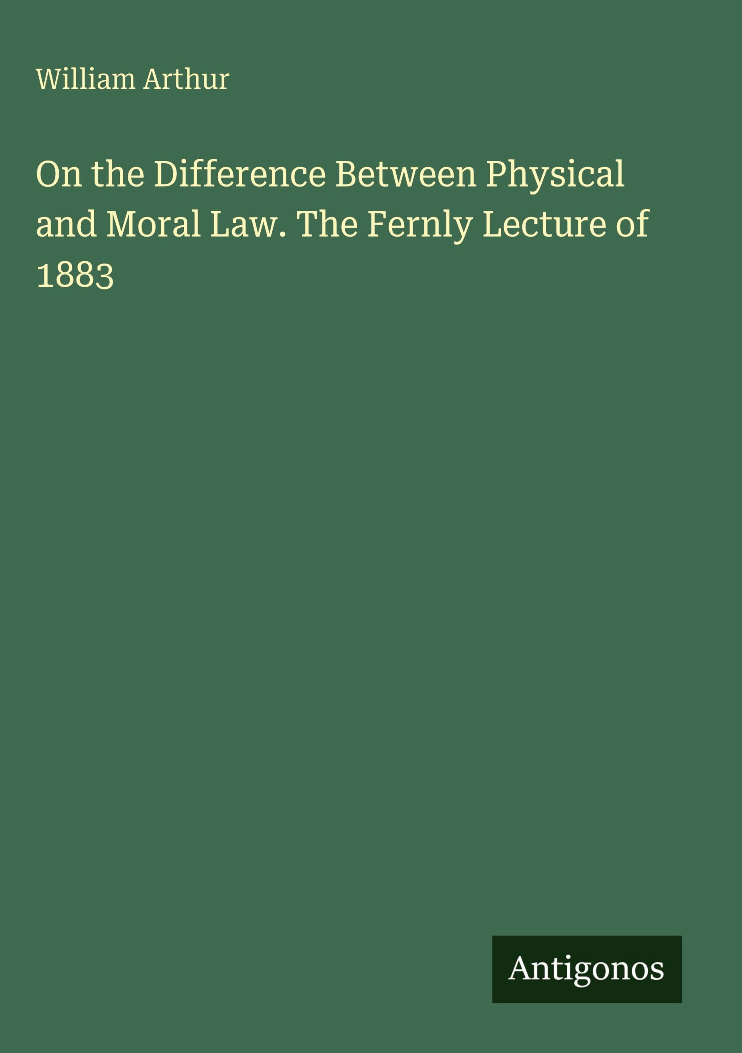 William Arthur: On the Difference Between Physical and Moral Law. The Fernly Lecture of 1883, Gebunden