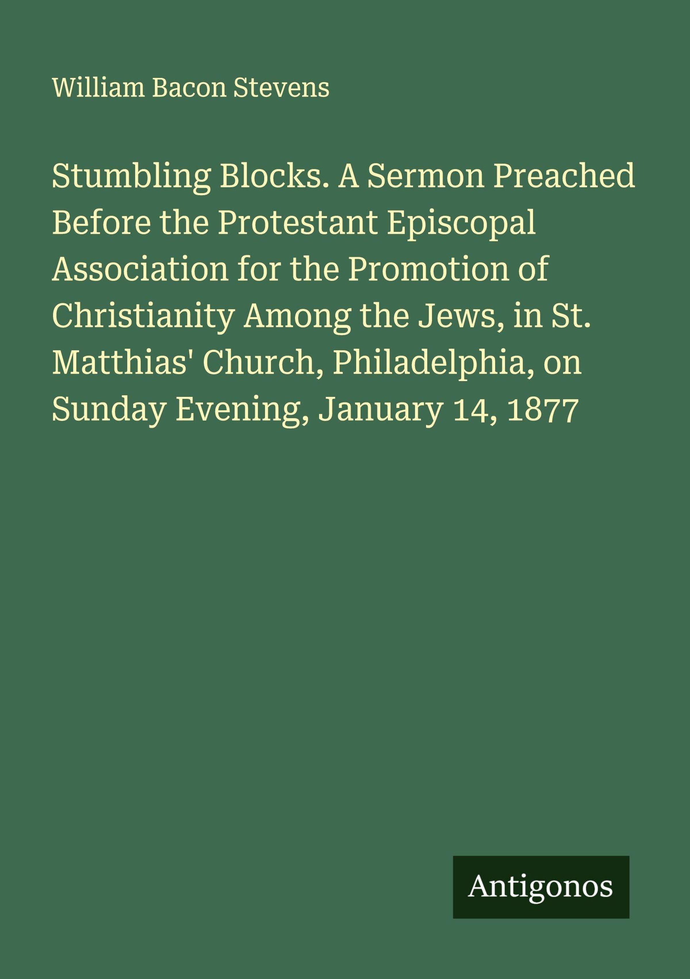 Stumbling Blocks. A Sermon Preached Before the Protestant Episcopal Association for the Promotion of Christianity Among the Jews, in St. Matthias' Church, Philadelphia, on Sunday Evening, January 14, 1877