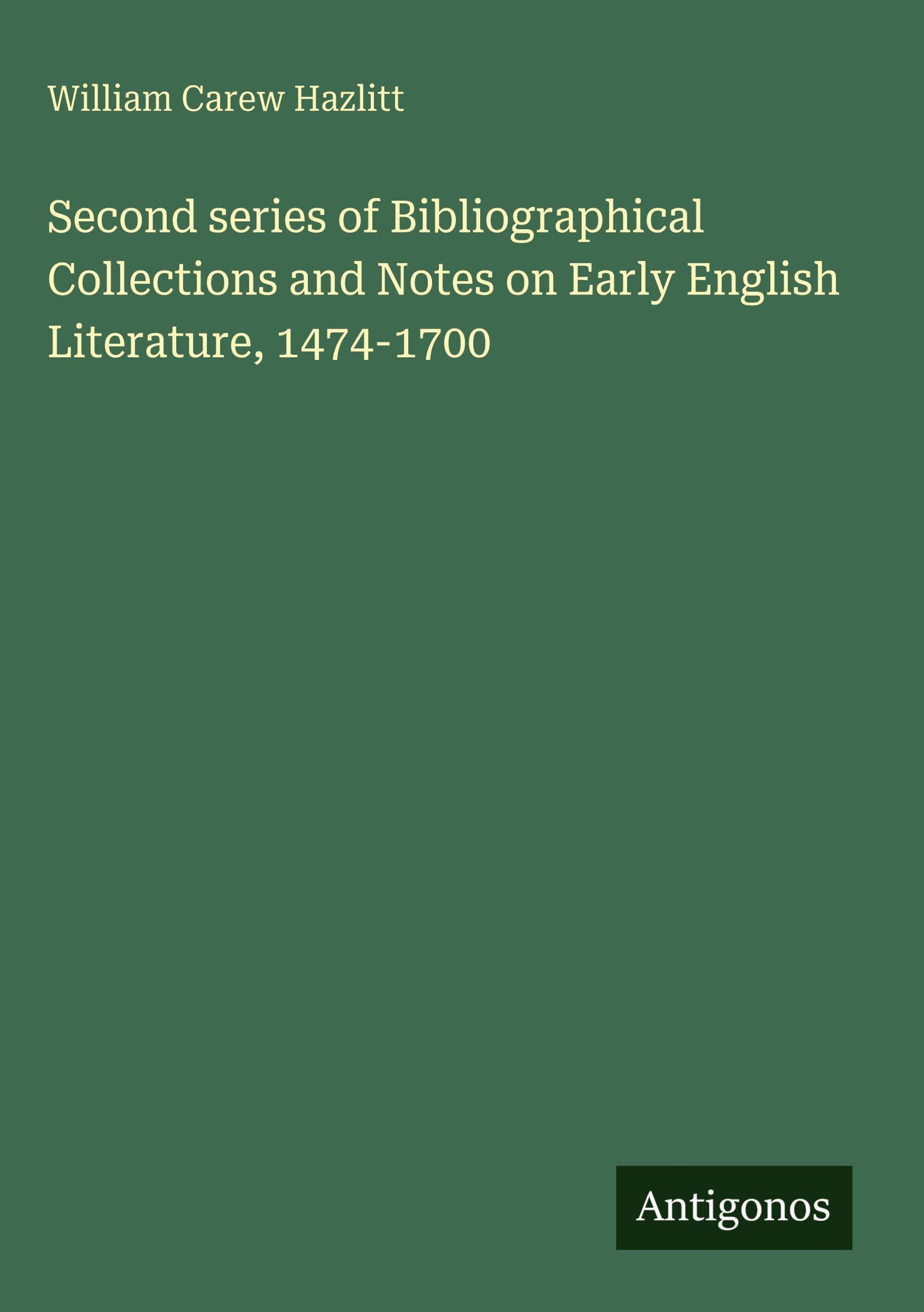 William Carew Hazlitt: Second series of Bibliographical Collections and Notes on Early English Literature,..., Gebunden