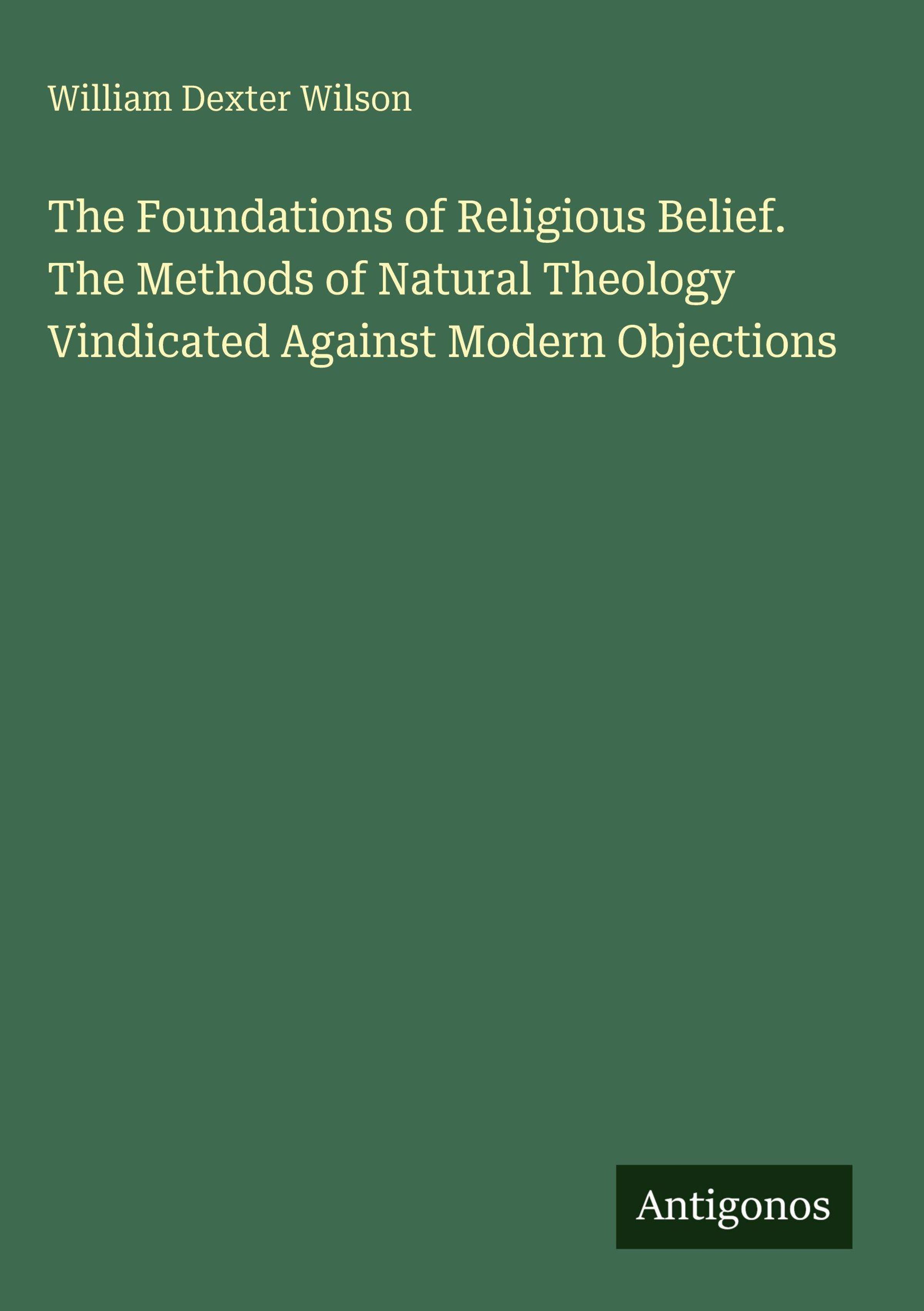 William Dexter Wilson: The Foundations of Religious Belief. The Methods of Natural Theology Vindicated Against..., Gebunden