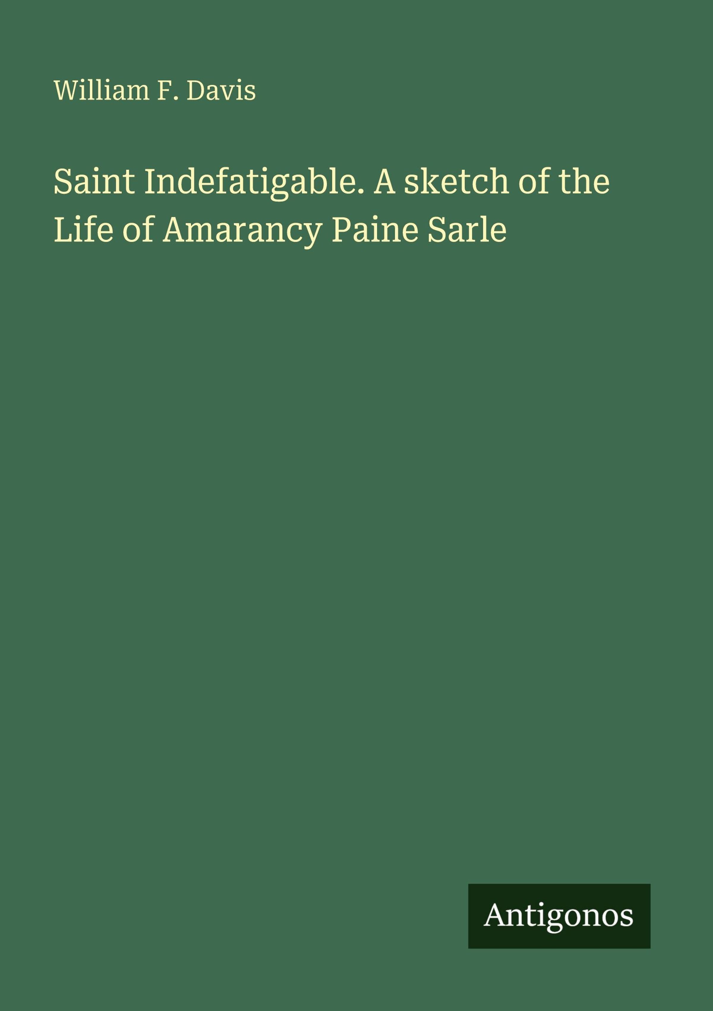 Saint Indefatigable. A sketch of the Life of Amarancy Paine Sarle