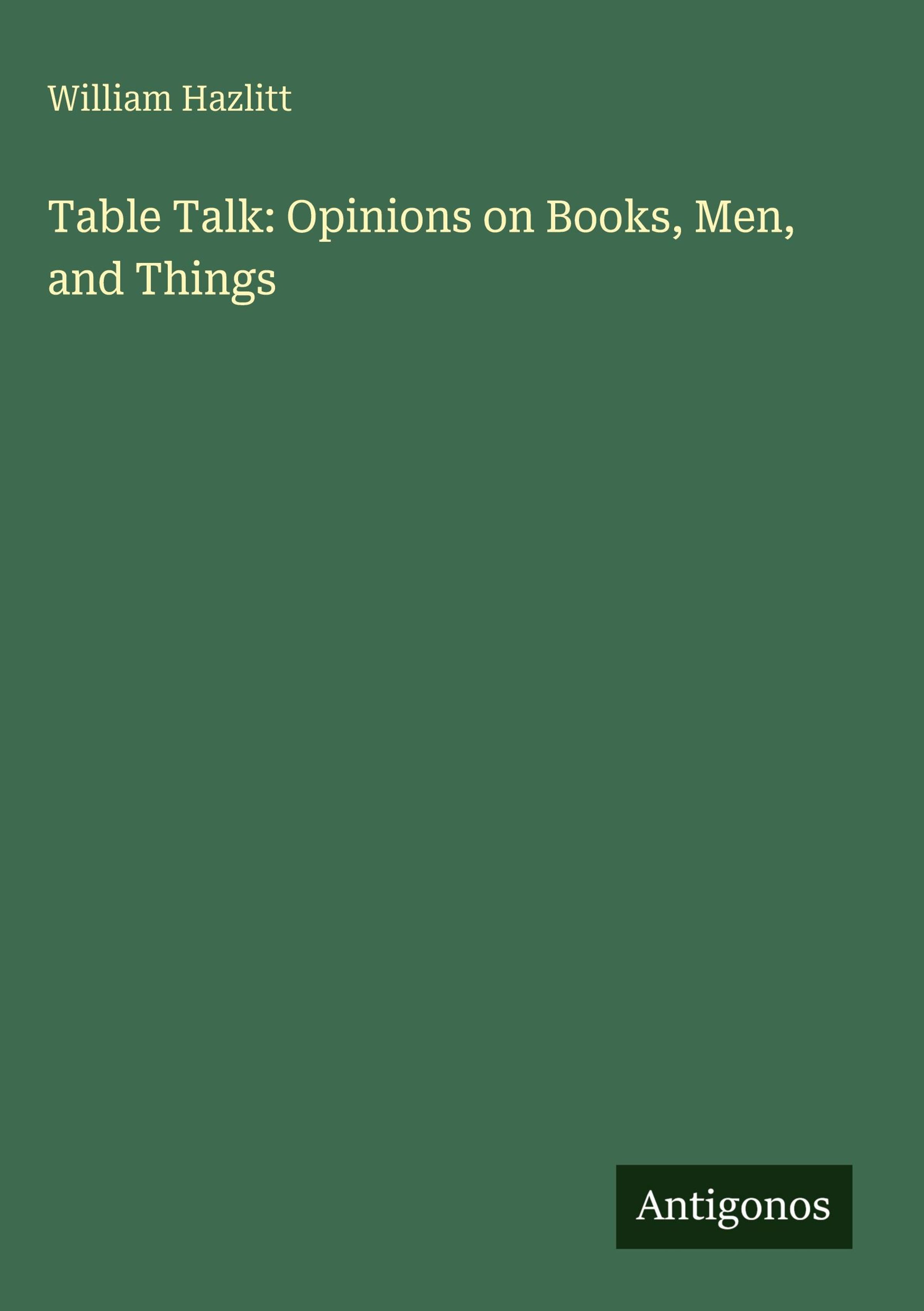 William Hazlitt: Table Talk: Opinions on Books, Men, and Things, Gebunden