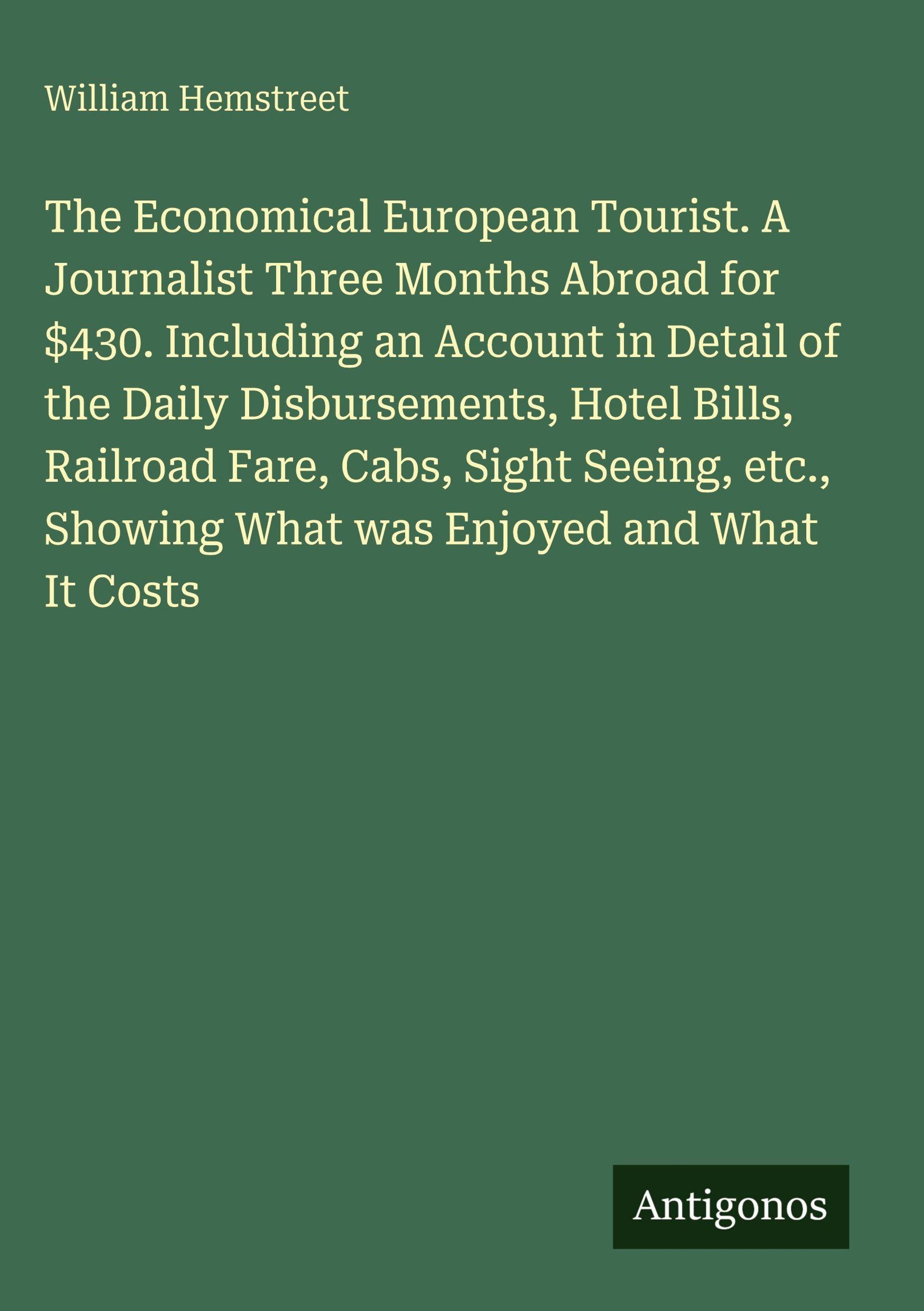 William Hemstreet: The Economical European Tourist. A Journalist Three Months Abroad for $430. Including an..., Gebunden