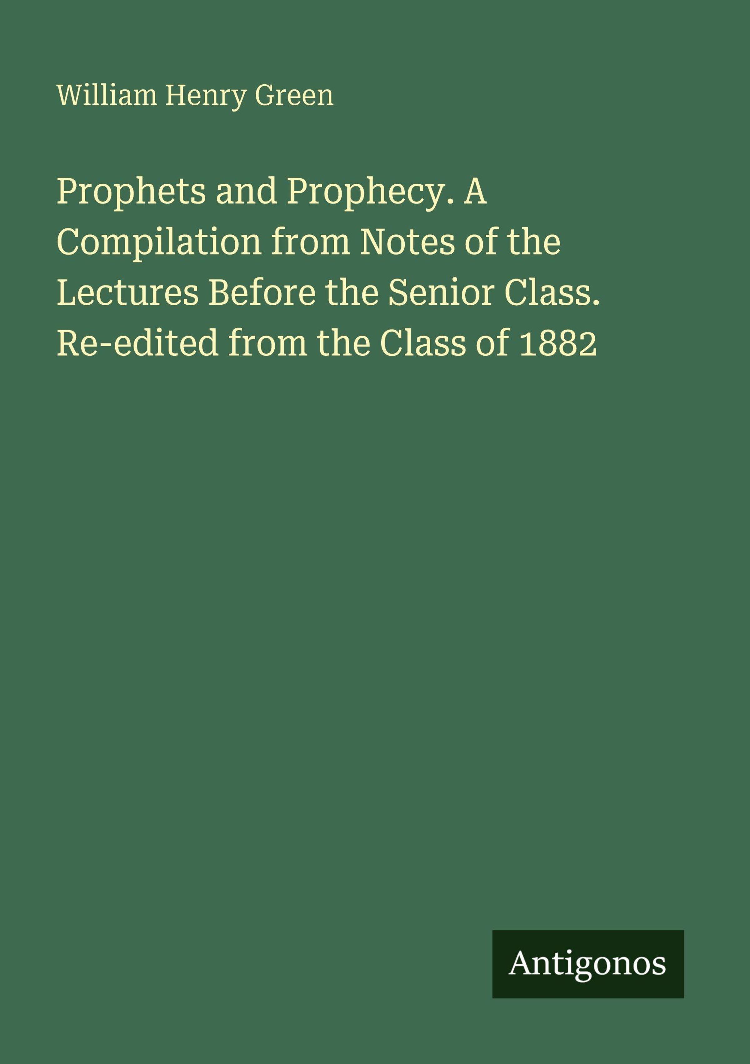 Prophets and Prophecy. A Compilation from Notes of the Lectures Before the Senior Class. Re-edited from the Class of 1882