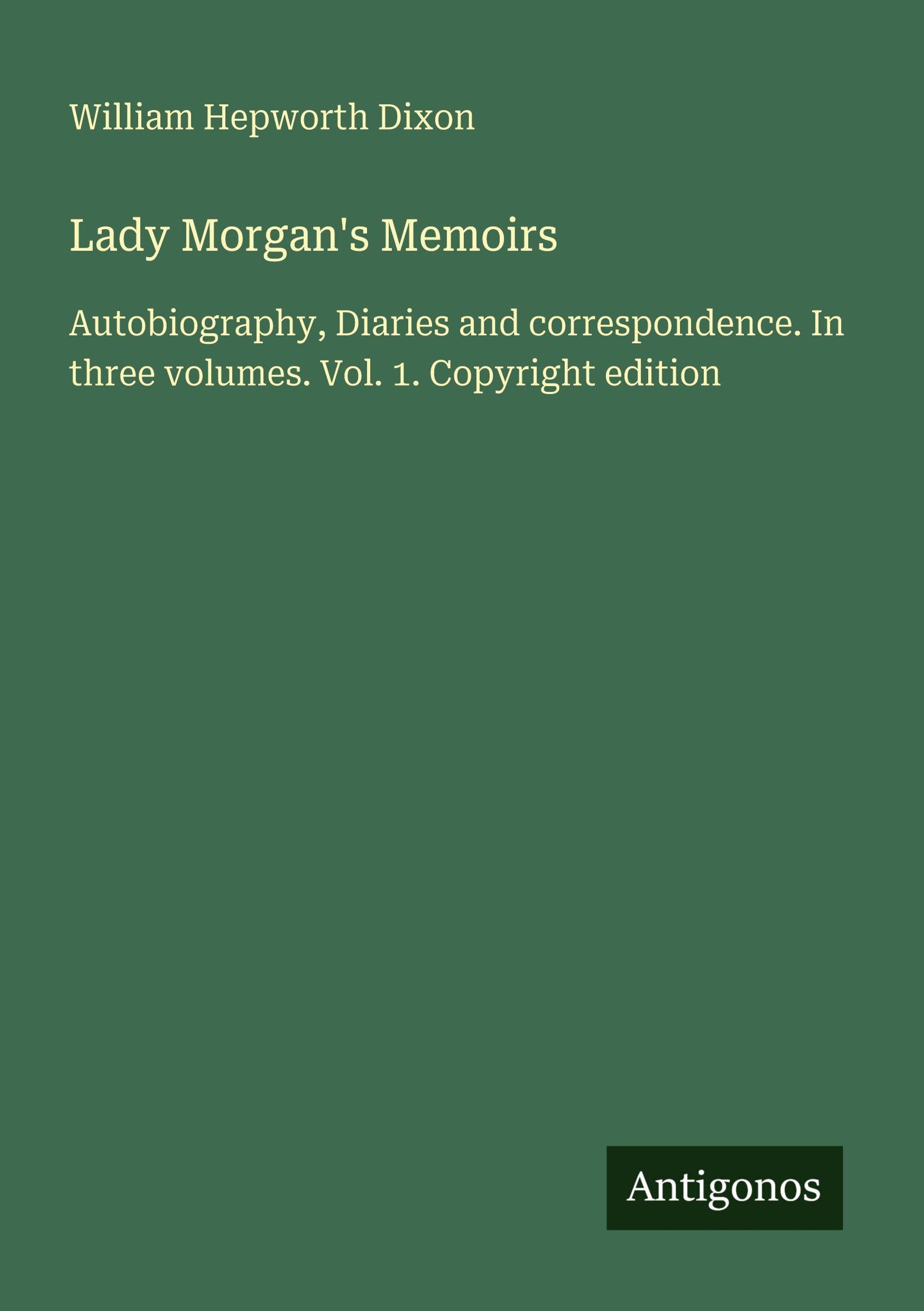 William Hepworth Dixon: Lady Morgan's Memoirs, Buch