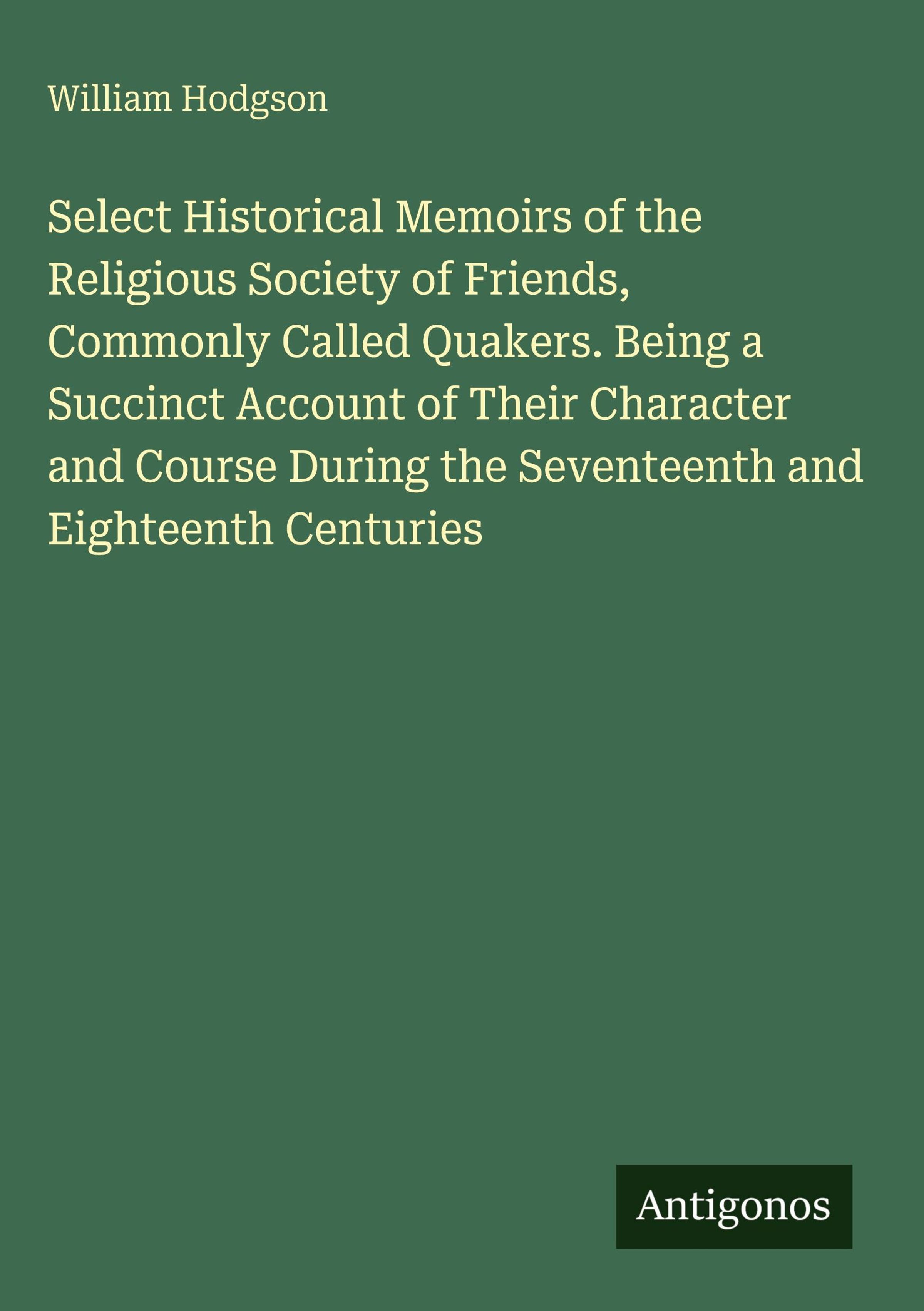 William Hodgson: Select Historical Memoirs of the Religious Society of Friends, Commonly Called Quakers. Being a..., Gebunden