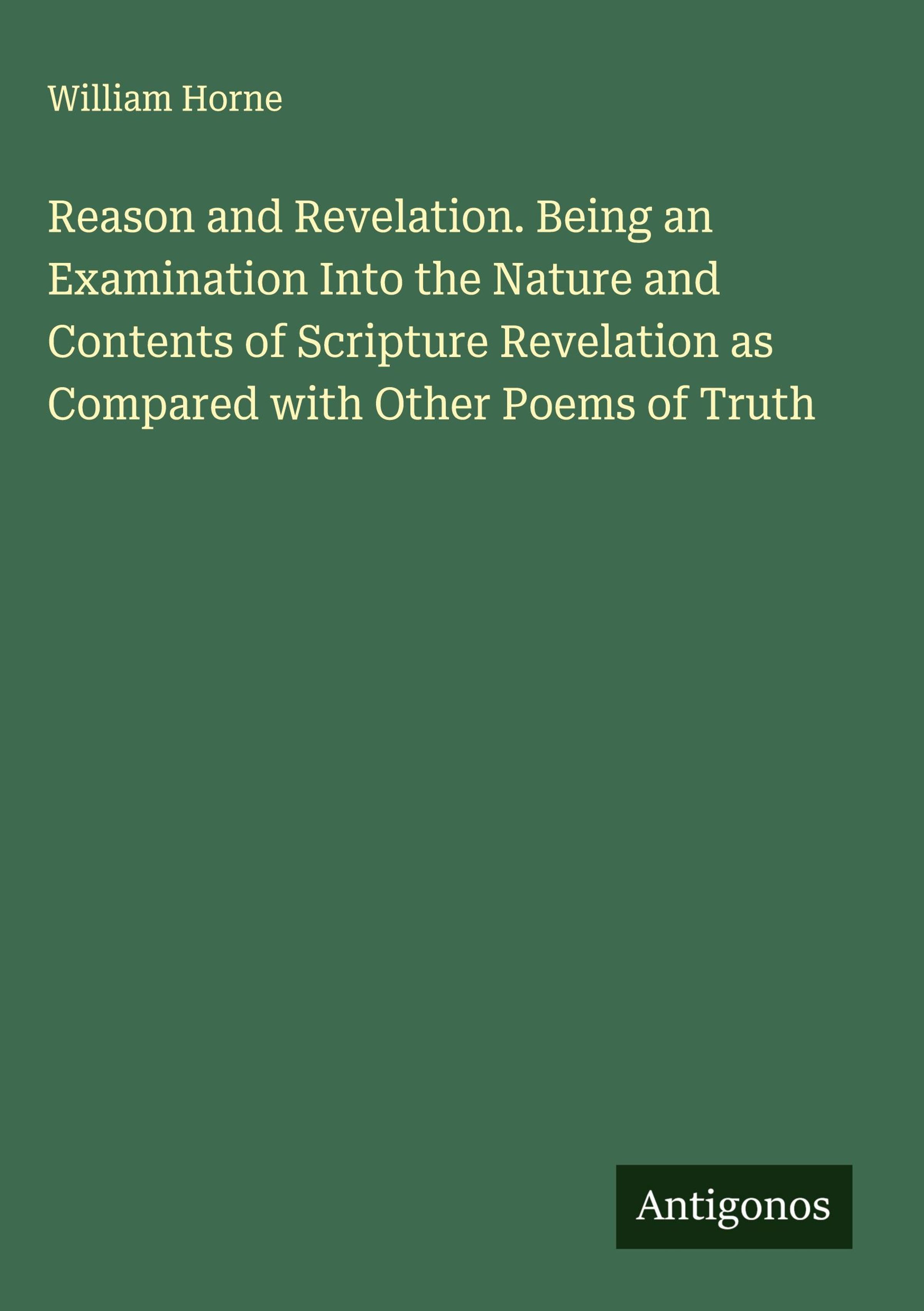William Horne: Reason and Revelation. Being an Examination Into the Nature and Contents of Scripture Revelation..., Gebunden