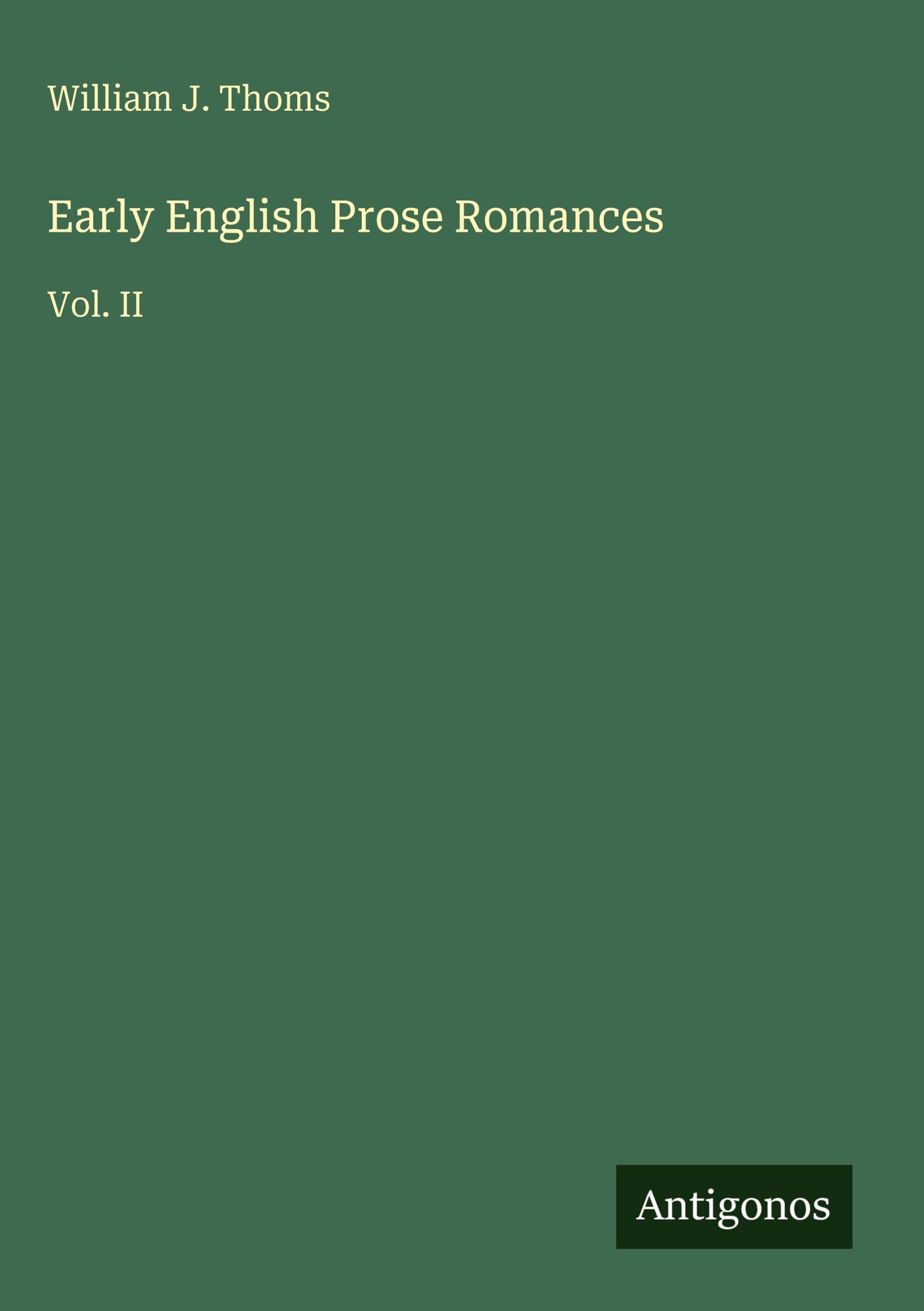 William J. Thoms: Early English Prose Romances, Buch, Buch