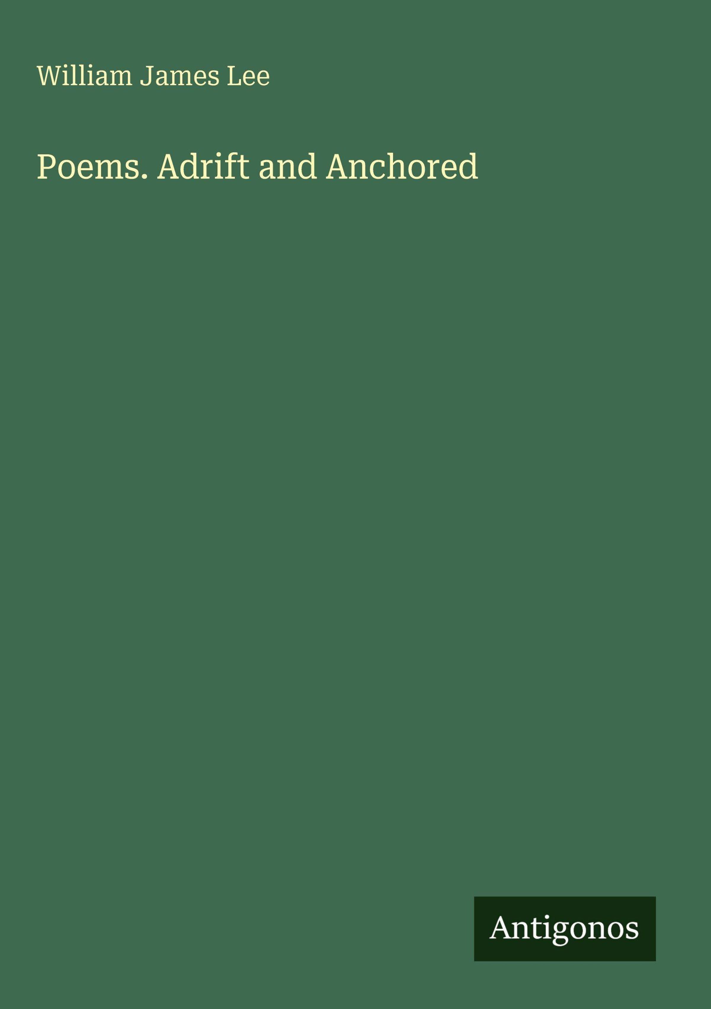Grüner Hintergrund, oben "William James Lee", darunter "Poems. Adrift and Anchored". Unten rechts "Antigonos"., Buch