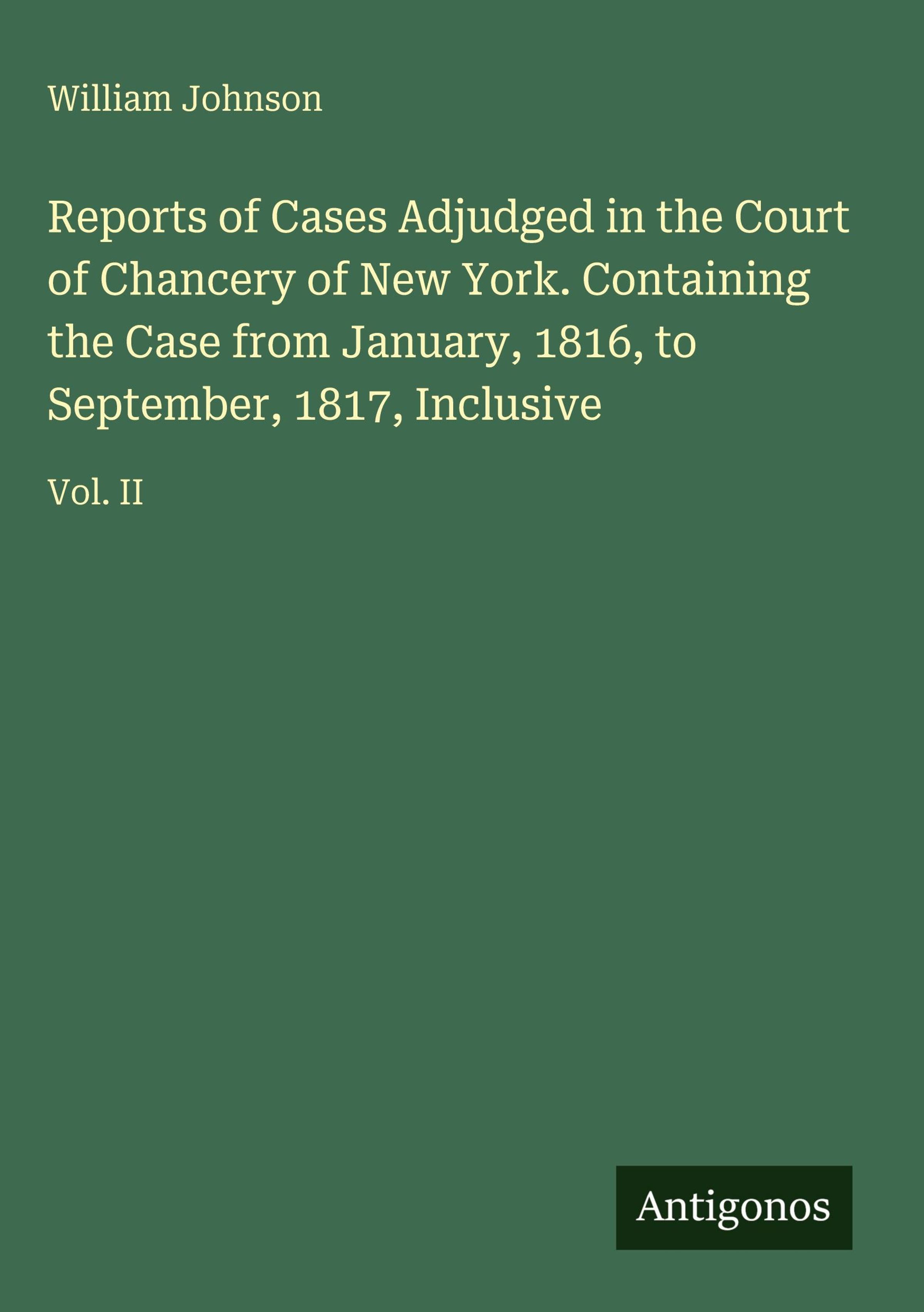 William Johnson: Reports of Cases Adjudged in the Court of Chancery of New York. Containing the Case from..., Gebunden