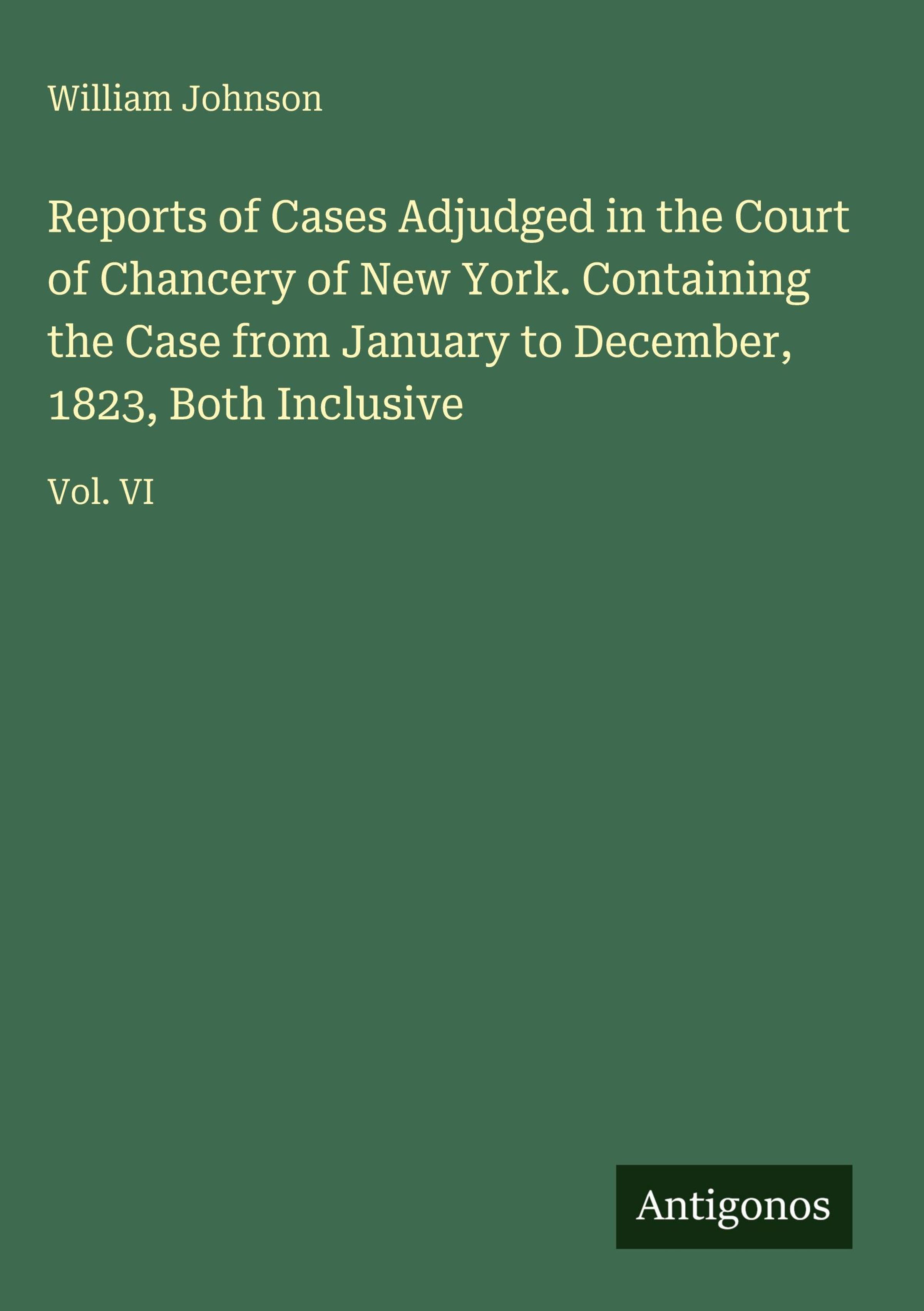 Reports of Cases Adjudged in the Court of Chancery of New York. Containing the Case from January to December, 1823, Both Inclusive
