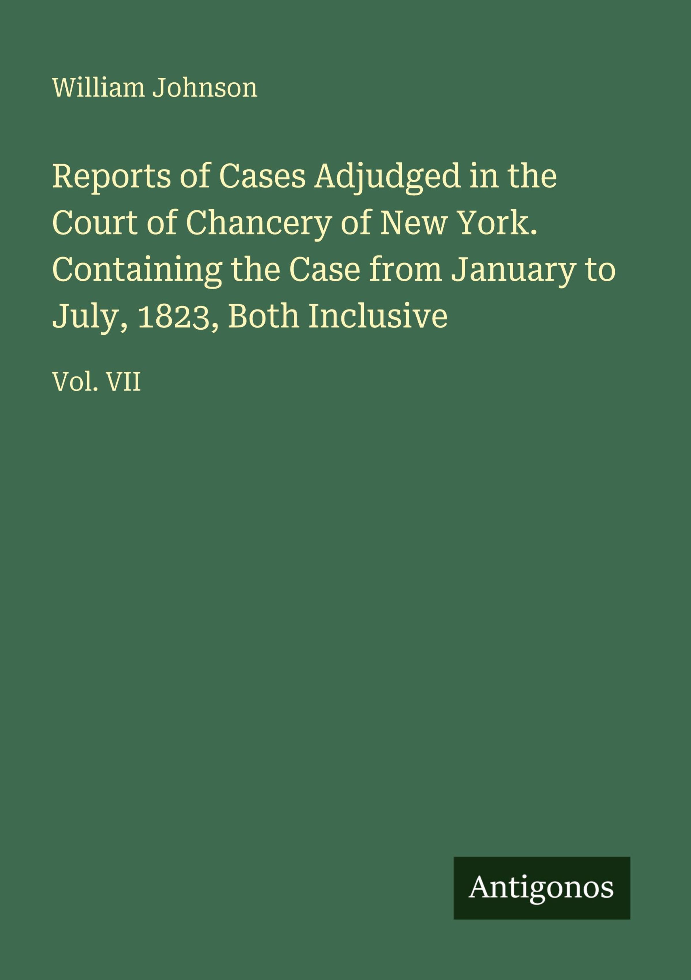 Reports of Cases Adjudged in the Court of Chancery of New York. Containing the Case from January to July, 1823, Both Inclusive