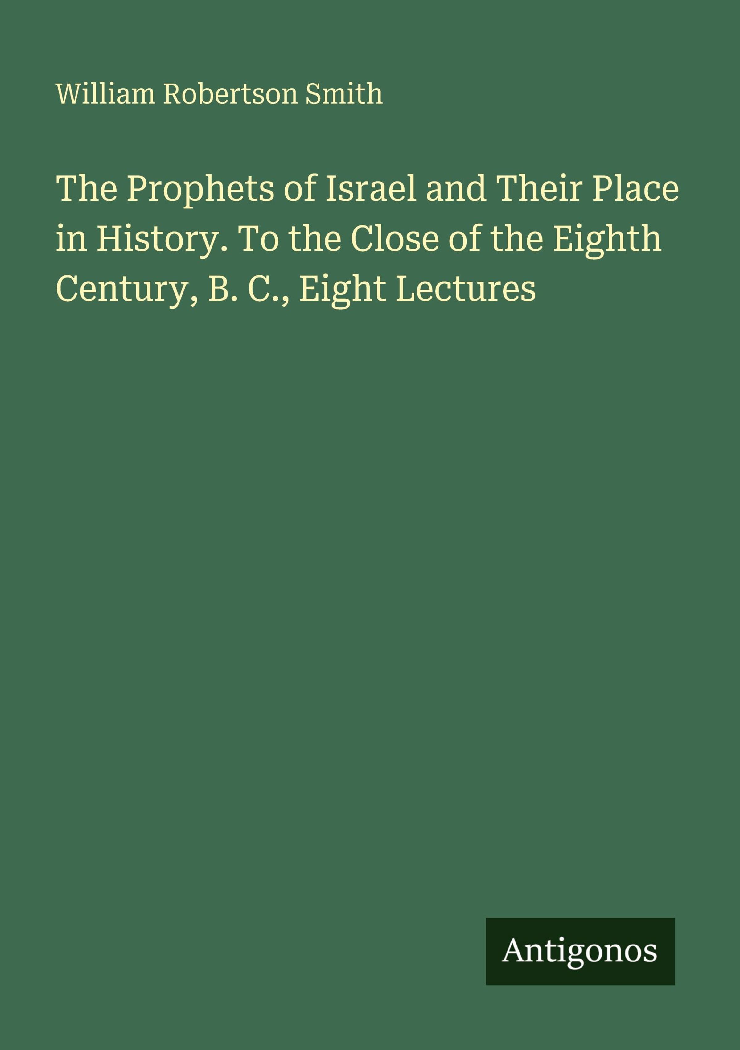The Prophets of Israel and Their Place in History. To the Close of the Eighth Century, B. C., Eight Lectures