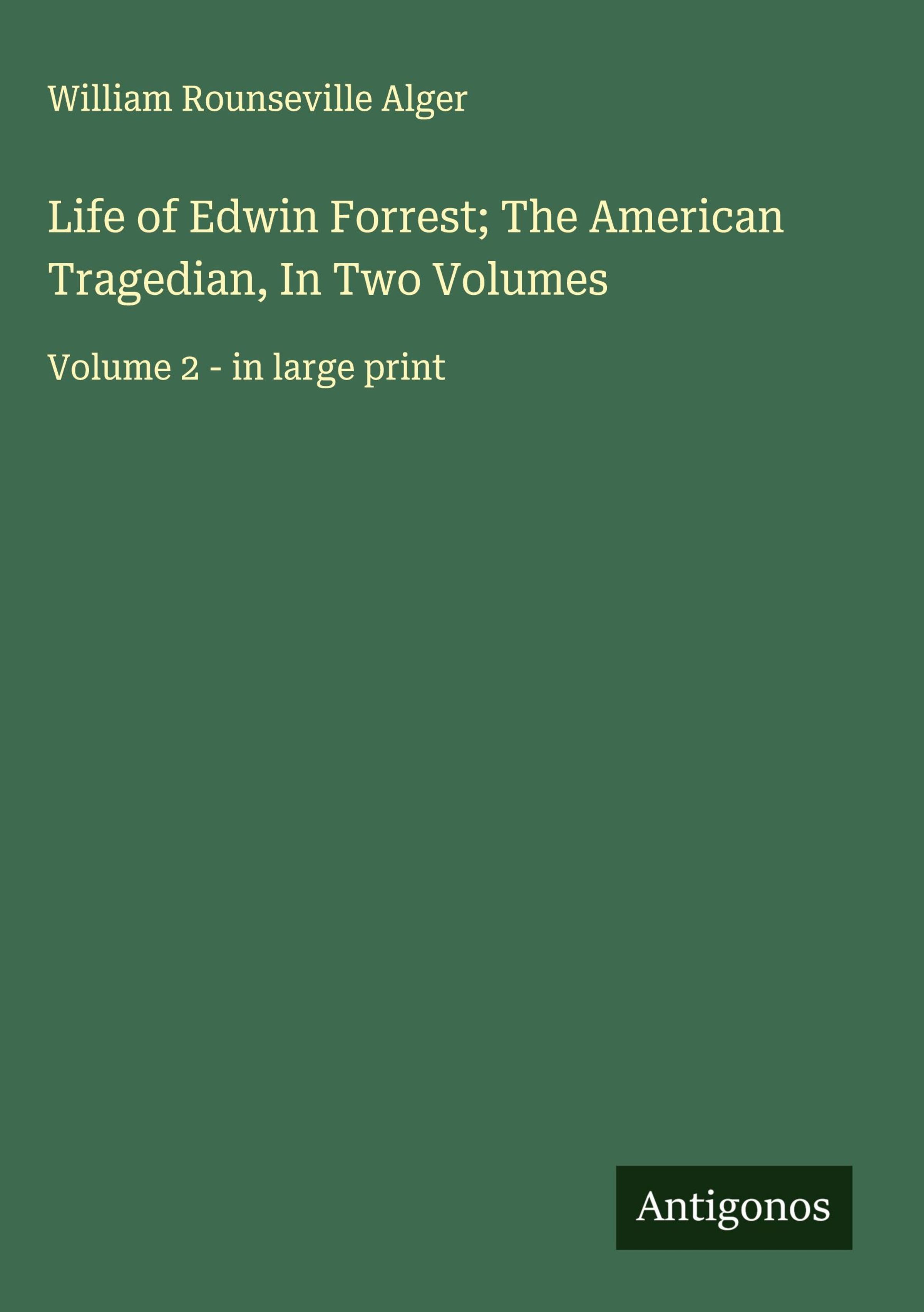 William Rounseville Alger: Life of Edwin Forrest; The American Tragedian, In Two Volumes, Gebunden