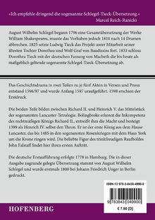 König Heinrich IV. Erster Teil: Erstmals ins Deutsche übersetzt von Christoph Martin Wieland (1764). Die vorliegende Übersetzung stammt von August Wilhelm Schlegel. Erstdruck in: Shakspeare's dramatische Werke. Übersetzt von August Wilhelm Schlegel, Bd. 6, Berlin (Johann Friedrich Unger) 1800. König Heinrich IV. Zweiter Teil: Erstmals ins Deutsche übersetzt von Christoph Martin Wieland (1764). Die vorliegende Übersetzung stammt von August Wilhelm Schlegel. Erstdruck in: Shakspeare's dramatische Werke. Übersetzt von August Wilhelm Schlegel, Bd. 6, Berlin (Johann Friedrich Unger) 1800.