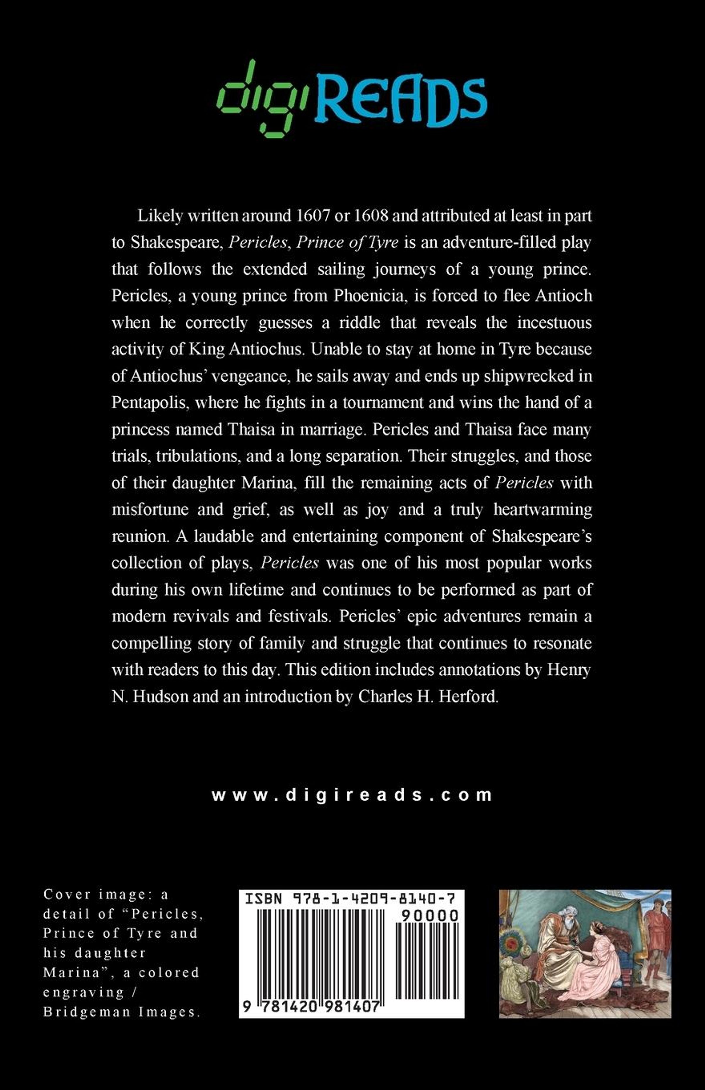 Likely written around 1607 or 1608 and attributed at least in part to Shakespeare, "Pericles, Prince of Tyre" is an adventure-filled play that follows the extended sailing journeys of a young prince. Pericles, a young prince from Phoenicia, is forced to flee Antioch when he correctly guesses a riddle that reveals the incestuous activity of King Antiochus. Unable to stay at home in Tyre because of Antiochus' vengeance, he sails away and ends up shipwrecked in Pentapolis, where he fights in a tournament and wins the hand of a princess named Thaisa in marriage. Pericles and Thaisa face many trials, tribulations, and a long separation. Their struggles, and those of their daughter Marina, fill the remaining acts of "Pericles" with misfortune and grief, as well as joy and a truly heartwarming reunion. A laudable and entertaining component of Shakespeare's collection of plays, "Pericles" was one of his most popular works during his own lifetime and continues to be performed as part of modern revivals and festivals. Pericles' epic adventures remain a compelling story of family and struggle that continues to resonate with readers to this day. This edition is printed on premium acid-free paper, includes annotations by Henry N. Hudson, and an introduction by Charles H. Herford.