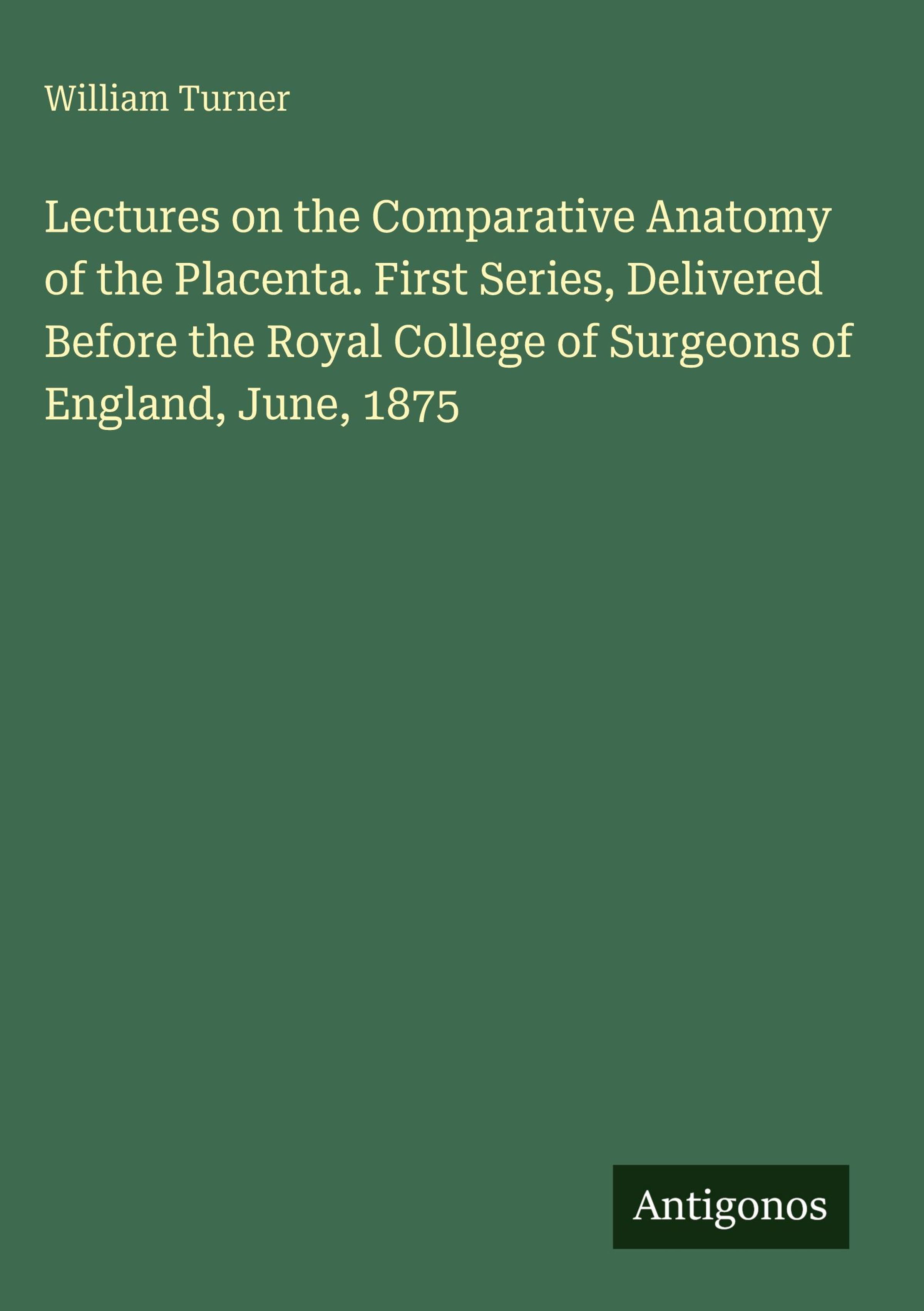 Lectures on the Comparative Anatomy of the Placenta. First Series, Delivered Before the Royal College of Surgeons of England, June, 1875
