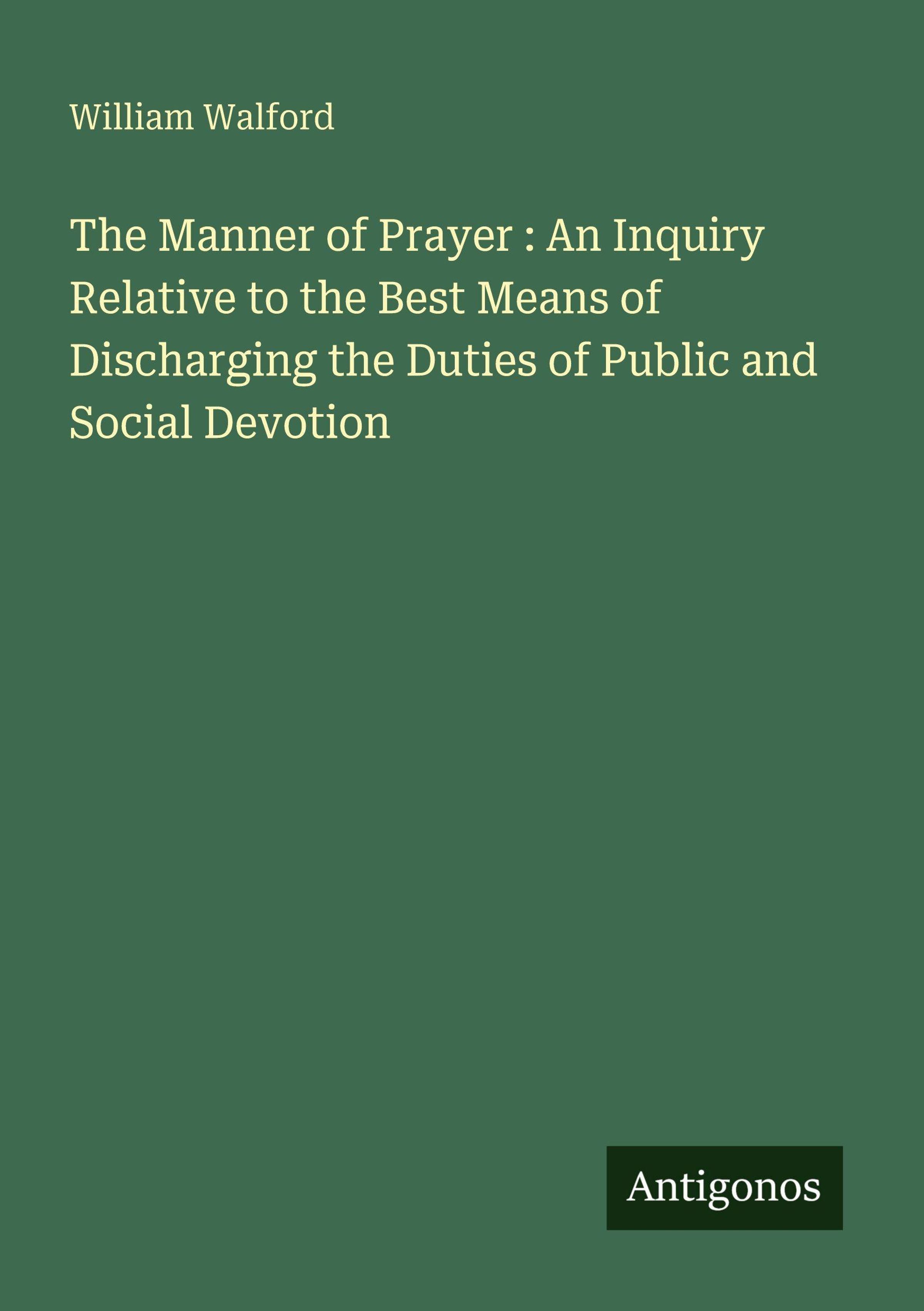 The Manner of Prayer : An Inquiry Relative to the Best Means of Discharging the Duties of Public and Social Devotion