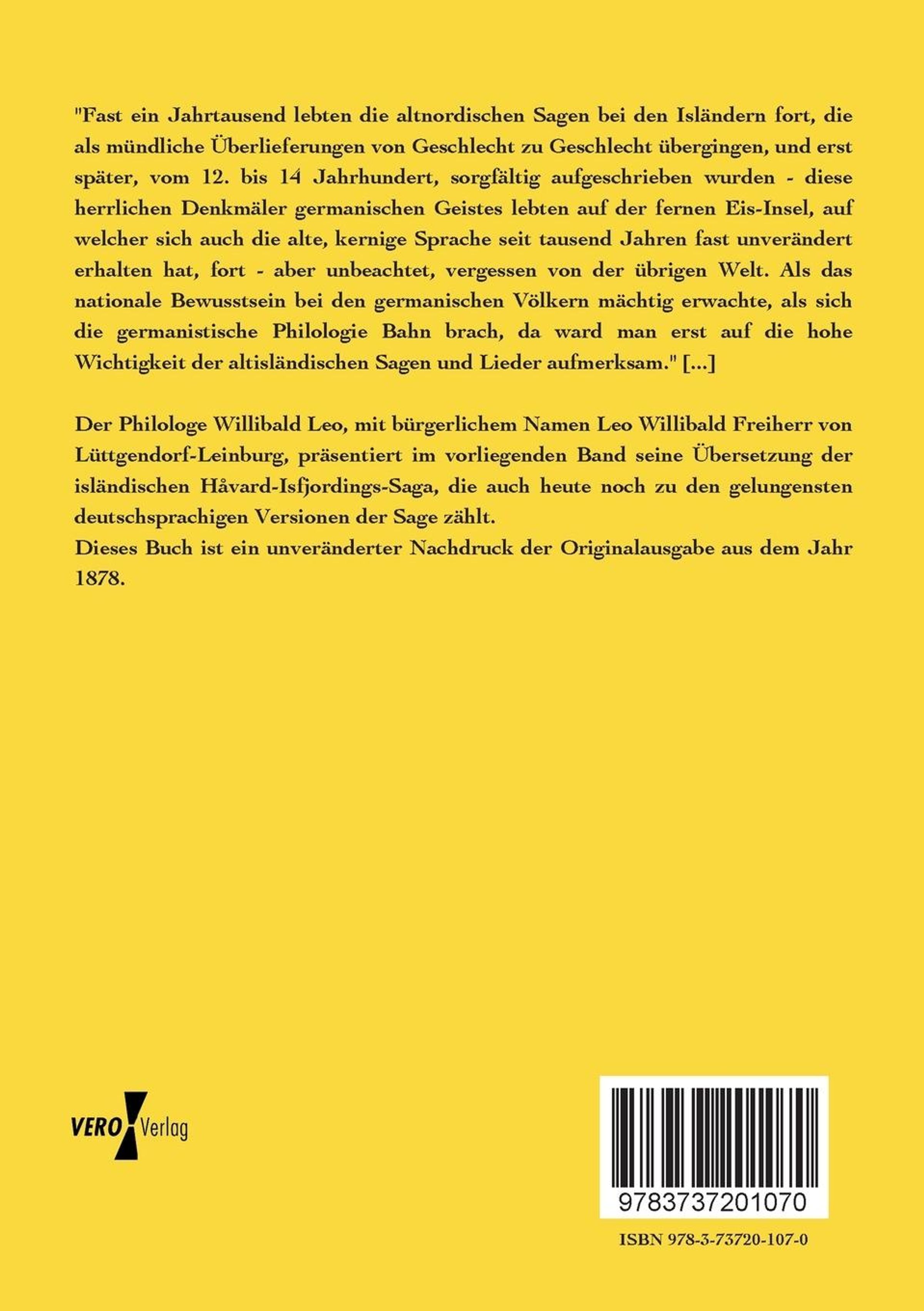 Der Philologe Willibald Leo, mit bürgerlichem Namen Leo Willibald Freiherr von Lüttgendorf-Leinburg, präsentiert im vorliegenden Band seine Übersetzung der isländischen Håvard-Isfjordings-Saga, die auch heute noch zu den gelungensten deutschsprachigen Versionen der Sage zählt. Dieses Buch ist ein unveränderter Nachdruck der Originalausgabe aus dem Jahr 1878.
