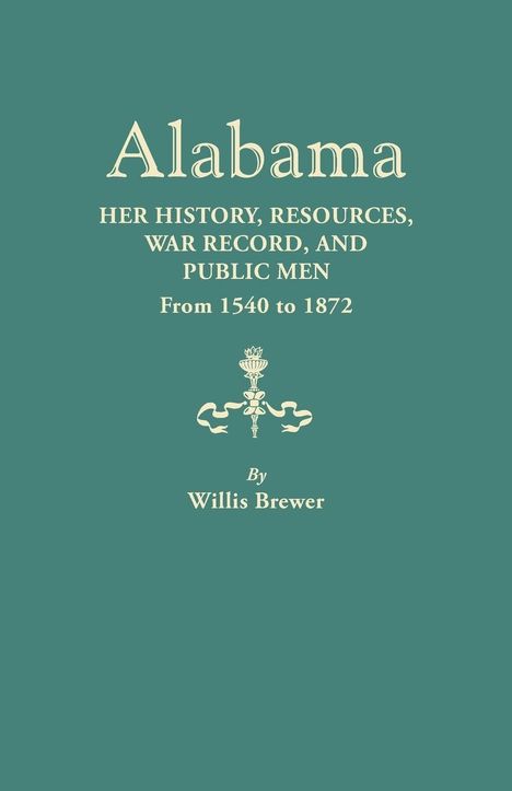 This is a remarkably detailed history of the state of Alabama from the time of the Spanish explorer Desoto's arrival in 1540 to the year of its original publication in 1872. Containing elements that will appeal to the genealogist and historian alike, Brewer's "Alabama" is arranged in three parts. The first eleven chapters comprise an outline history of the state, with pages devoted to exploration, the Indian population, natural resources, economic development, Alabama's territorial period, and state politics in general. Included in this section is a complete listing of Alabama governors, supreme court and circuit court judges, chancellors, attorney-generals, secretaries of state, and U. S. and Confederate Senators and Representatives, giving the name of the office holder and dates of service. The middle section of the book, the longest, contains a chapter on each of Alabama's sixty-five counties. Each chapter profiles the county's formation and organization, economic base, chief roads and water courses, biographical and family sketches of prominent citizens of the county, and a complete list of that county's state senators and representatives. The final section of this auspicious work recounts Alabama's involvement in the recently concluded Civil War, and it features sketches of every infantry and cavalry regiment to have served in the Confederacy. The sketches invariably recount the organization of the regiment, campaigns or battles fought in, and the names of the regiment's field and staff officers. An index to the 600 principal subjects of the biographical sketches may be found at the end of this extremely detailed volume.