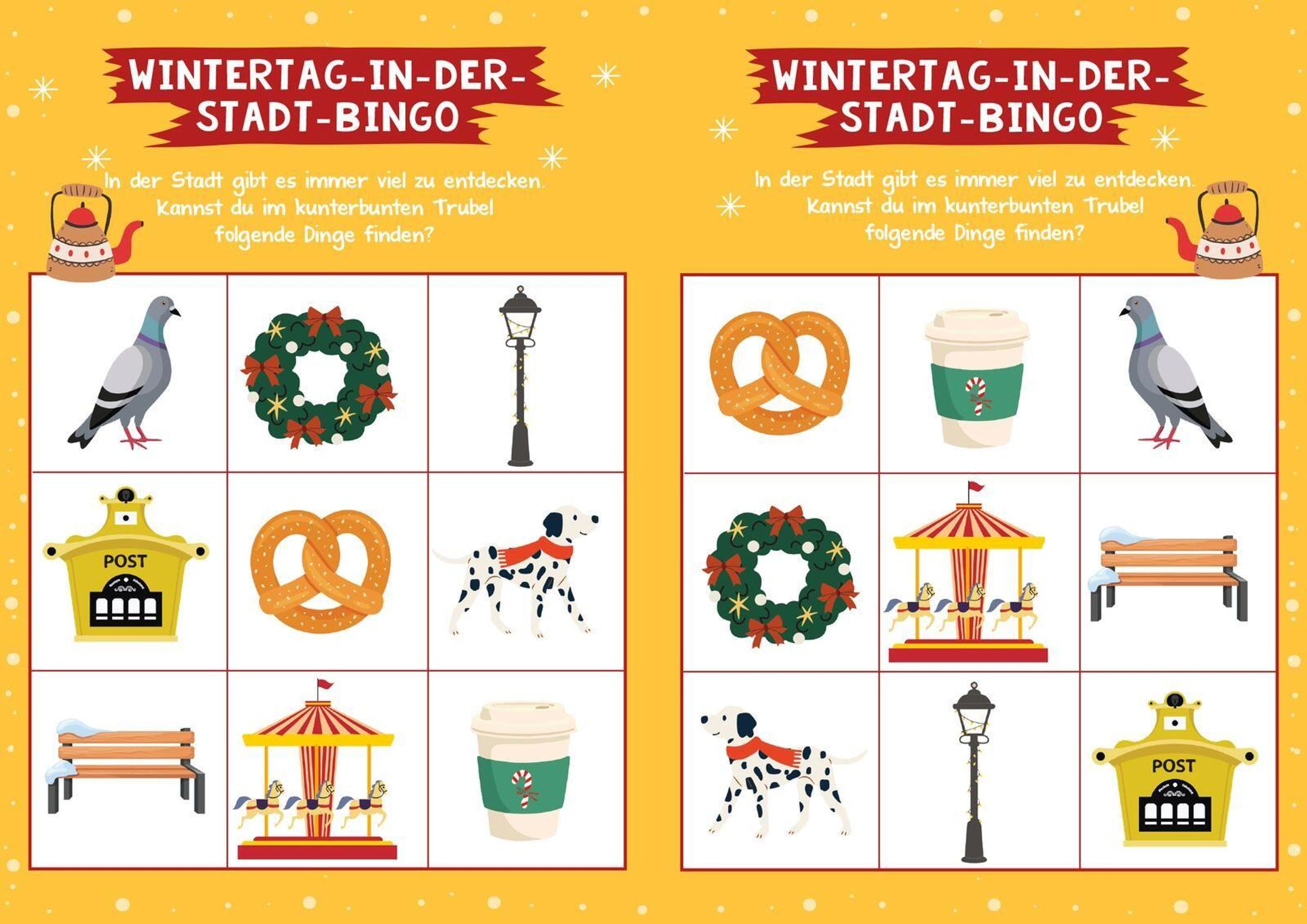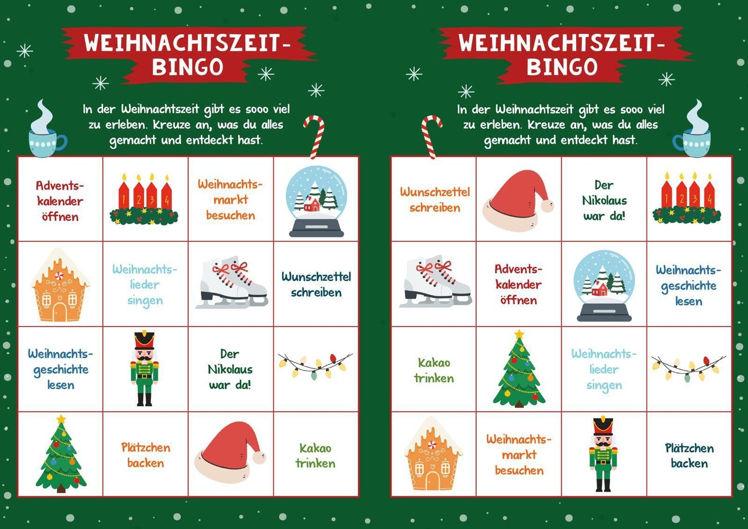 Dieser Bingo-Block mit über 90 Spielvorlagen ist perfekt für die Winterzeit! Ob Abenteuerspaziergänge in der Natur oder Beschäftigungsideen für das Warten auf die Geschenke, mit diesem Block wird es garantiert nicht langweilig!