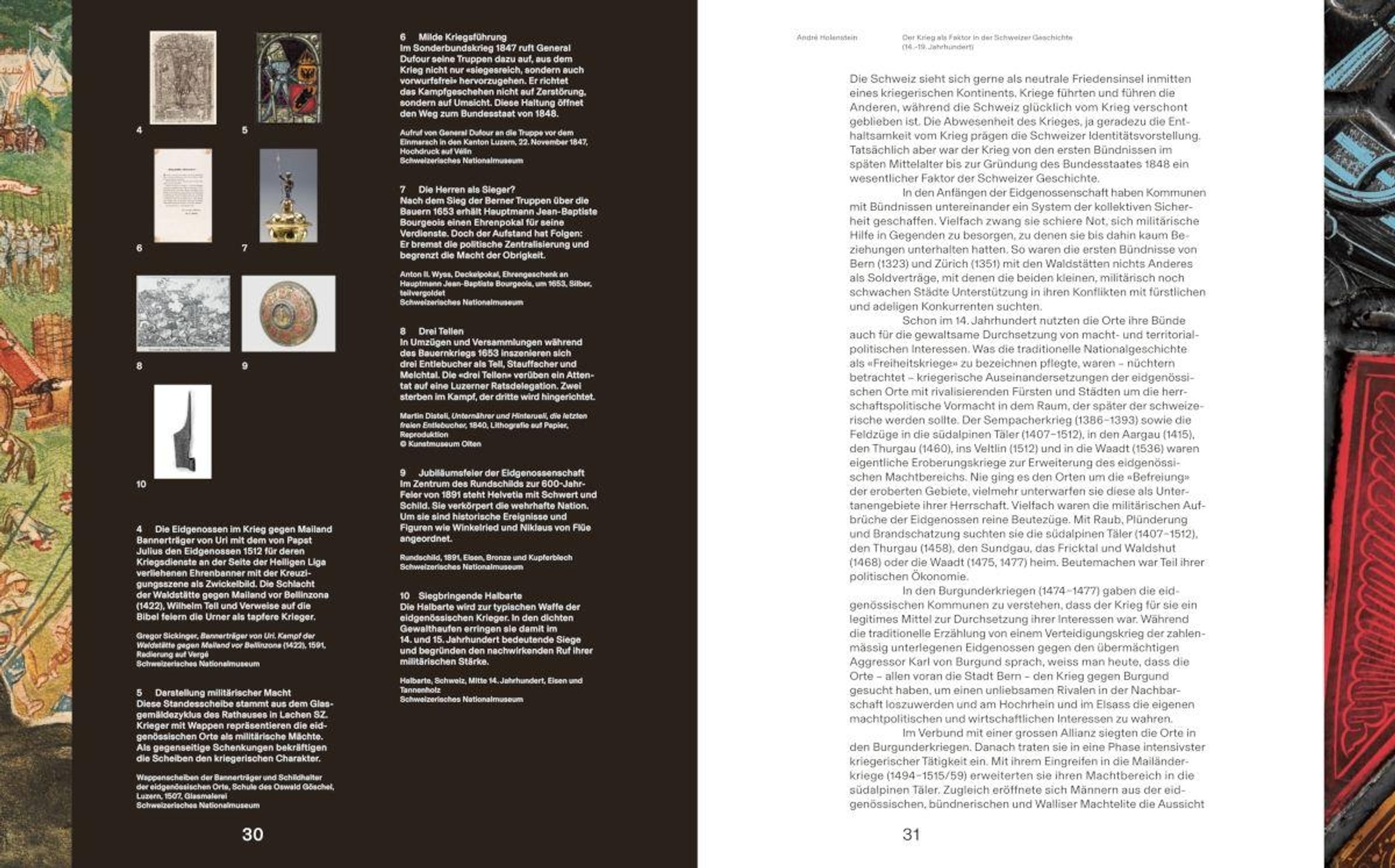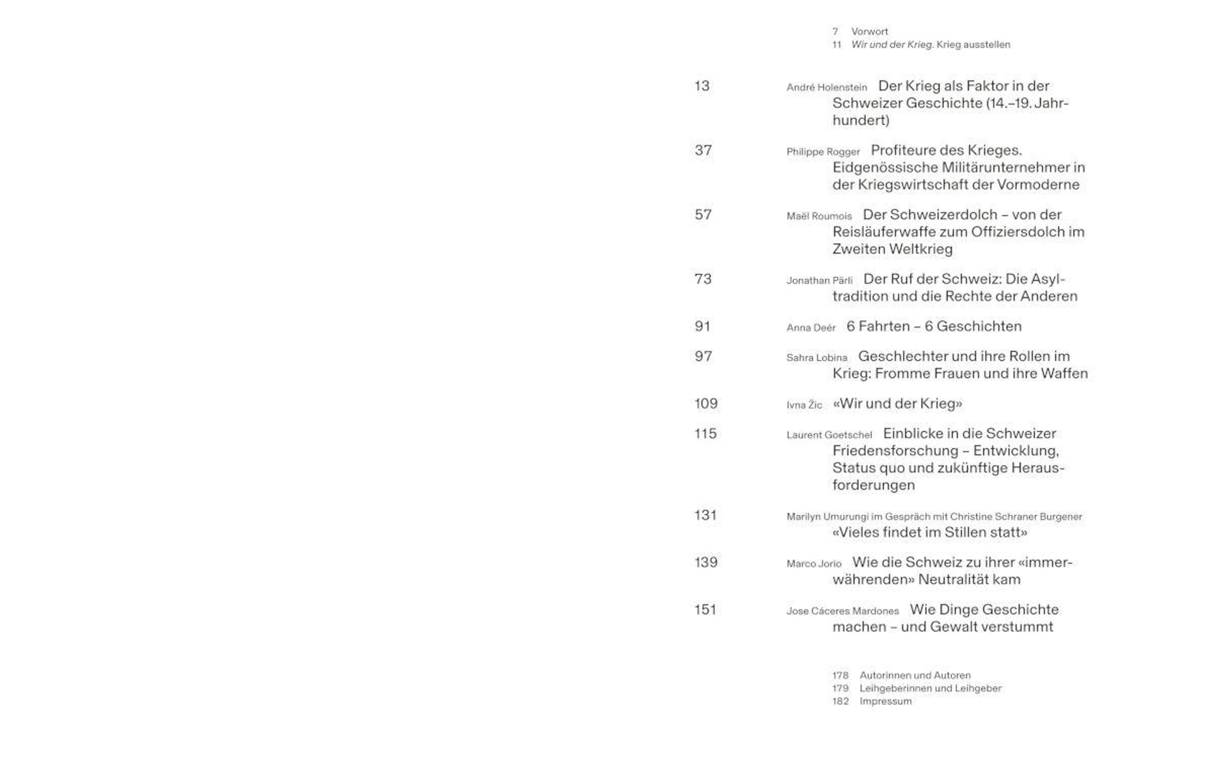 Wie bedeutend waren Kriege für die Entstehung der nationalen Identitäten der Schweiz in der Vergangenheit und Gegenwart und wie prägend sind sie für die Zukunft? Wie definiert sich die Schweiz über Krieg im Kollektiven und im Einzelnen? Wie wirkt Krieg sich auf Menschen und Umwelt in der Schweiz aus? Anhand von Fallbeispielen werden Deutungsmuster erkennbar, mit welchen die Schweiz sich während Kriegs- und Friedenszeiten konstruiert und positioniert hat, insbesondere wie die Schweizer Neutralität aus vielfältigen Kriegsverstrickungen entstanden ist. Auch die konkreten Auswirkungen der Kriege auf das gesellschaftliche Leben in der Schweiz werden aufgezeigt. So werden Spannungen und Widersprüche zwischen nationalen Selbst- sowie Rollenbildern und tatsächlichen Lebensrealitäten aufgezeigt.