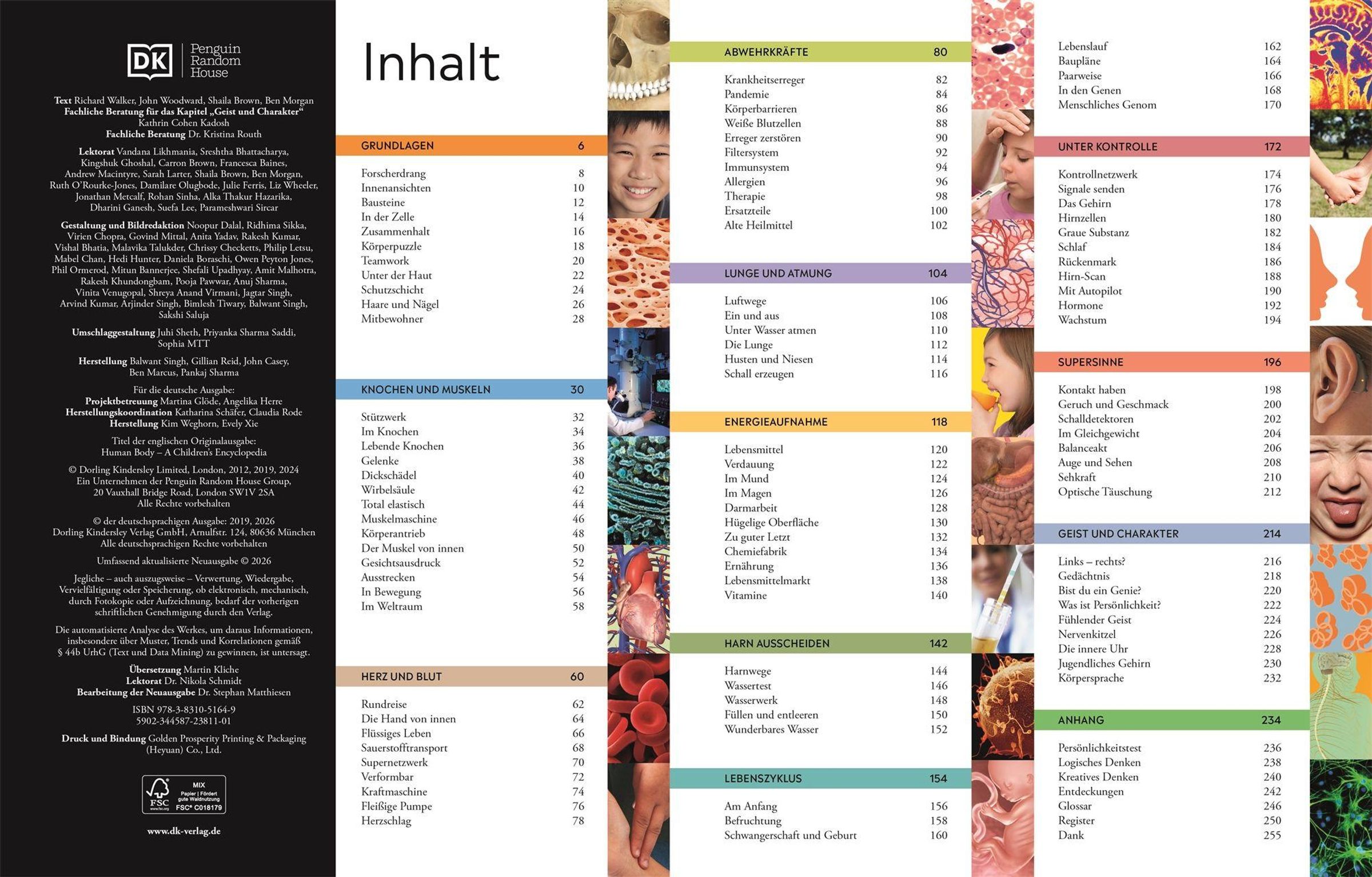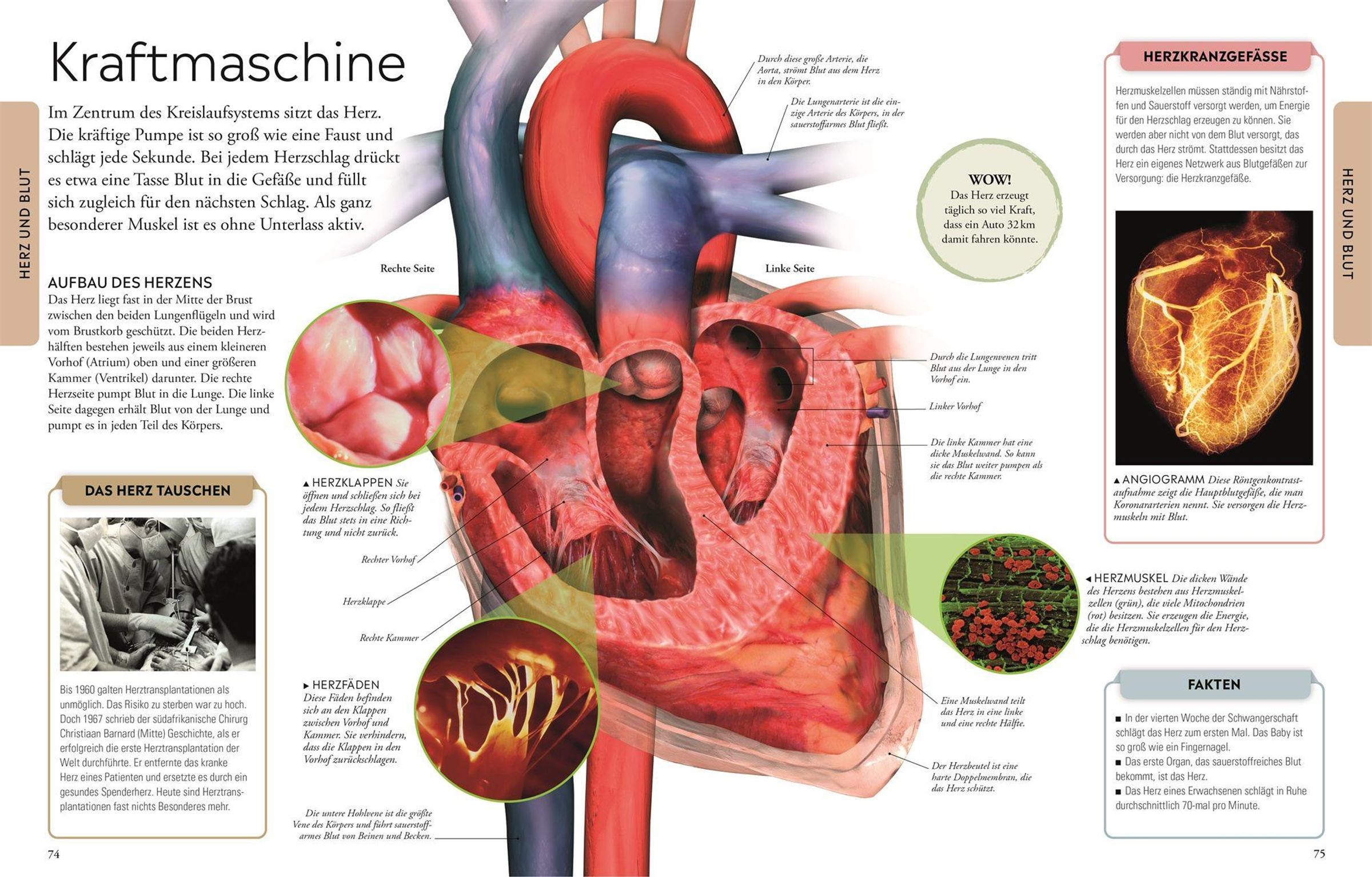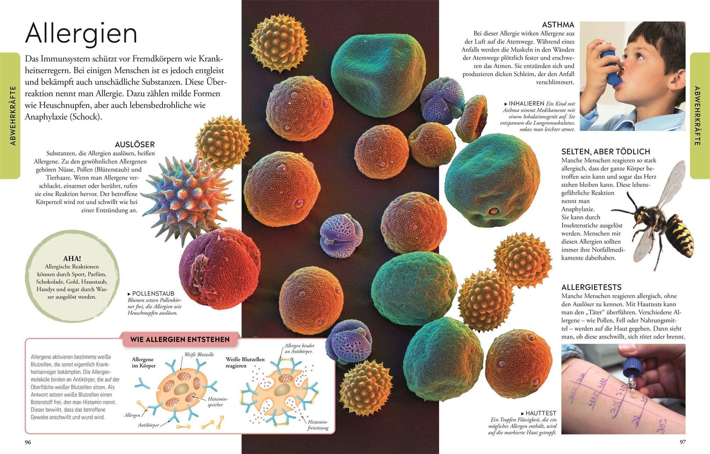 Wie viele Knochen und Muskeln hat der Mensch? Wie entsteht Urin? Und wie funktioniert das Immunsystem? In diesem cleveren Lexikon erfahren Kinder alles über unseren Körper - vom Skelett übers Nervensystem bis zu den fünf Sinnen, von den Hormonen bis zur Fortpflanzung. Die altersgerecht und anschaulich aufbereiteten Informationen machen Lust, sich in jede Seite zu vertiefen. Grafiken verdeutlichen komplexe Themen wie z. B. die Verdauung oder den Blutkreislauf und großformatige Fotos zeigen Besonderes wie eine Haarwurzel oder ein Baby in der Gebärmutter. Sonderseiten zu den Entdeckungen der Medizin und spannende Intelligenz- und Persönlichkeitstests machen dieses einmalige Nachschlagewerk komplett. Die perfekte Ergänzung zum Sachunterricht in der Grundschule und darüber hinaus ein wunderbares Geschenk , das Kinder viele Jahre begleitet.