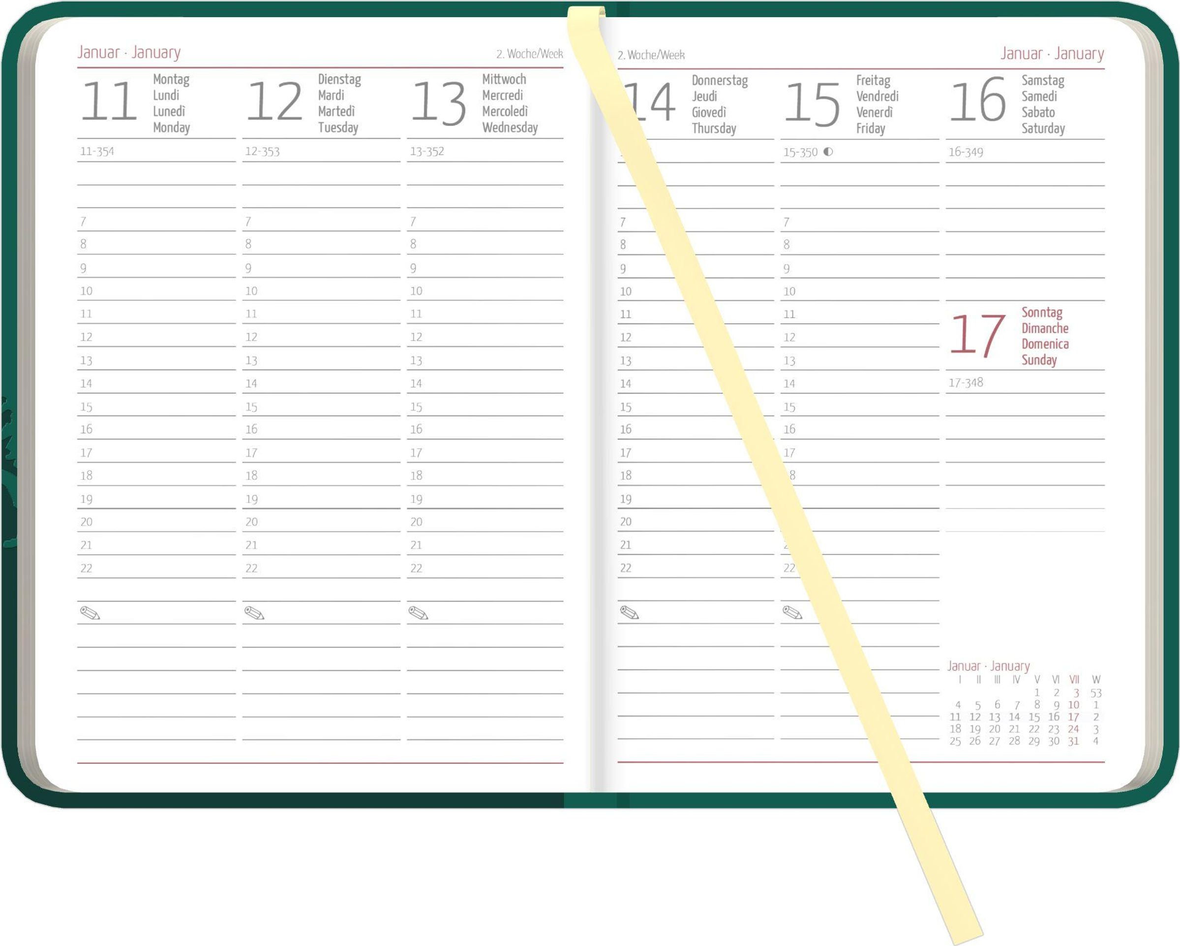 Übersichtliche Wochenansicht: 1 Woche pro Seite, zusätzliche Notizseite gegenüberliegend