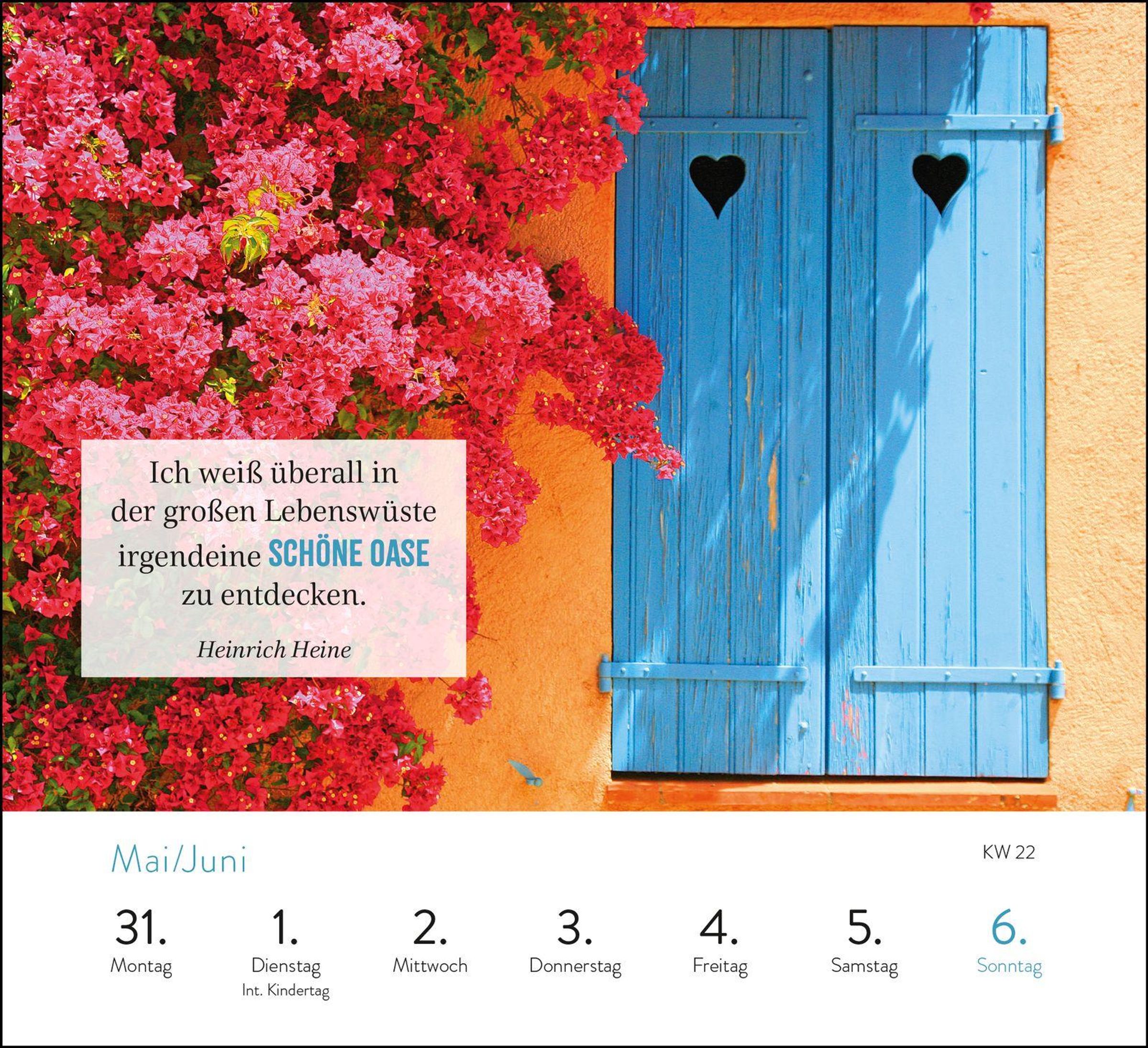 Der Wochenkalender Glücksmomente für jeden Tag 2027 macht schon mit seinen stimmungsvollen Fotos und liebevollen Zitaten einfach glücklich - zusätzlich finden sich auf der Rückseite jedes Kalenderblattes inspirierende Texte, Tipps und Rezepte, um sich kleine Auszeiten voller Glück zu gönnen . Der Glückskalender für das Jahr 2027 zum Aufstellen ist ein tolles Geschenk für Freunde und Familie, denen du im Jahr 2027 viele Glücksmomente wünschst.