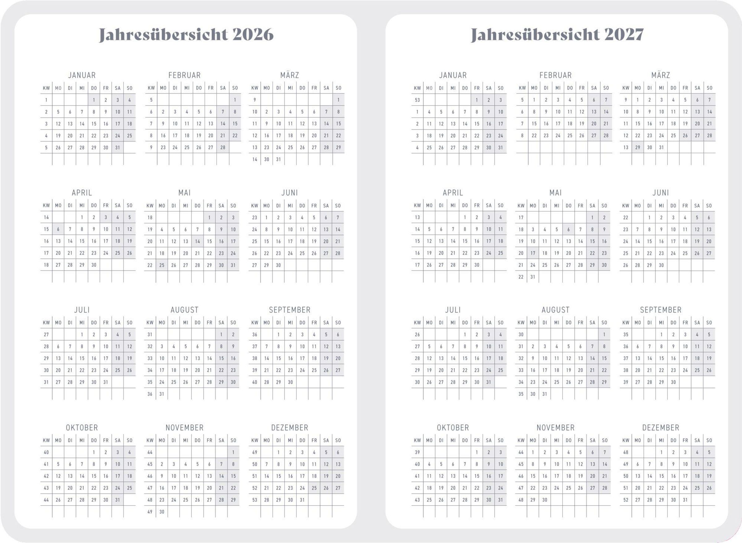 TERMINPLANER 2027: 112 Seiten im handlichen Format HOCHWERTIGE QUALITÄT: Gut aufklappbares Hardcover, Gummiband, Leseband, farbig gestaltete Innenseiten sowie Cover mit Goldfolie DEIN GLÜCKSTAGEBUCH: Auf den modern gestalteten Wochenseiten kannst du täglich deine Stimmung sowie deinen Glücksmoment festhalten und deine Woche reflektieren EXKLUSIVER INHALT: Mit Sternzeichen, Mondphasen und einer Auswahl an Feiertagen verschiedener Religionen BESONDERES GESCHENK: Durch die hochwertige Ausstattung ist dieser Tagesplaner das perfekte Geschenk für mehr Achtsamkeit im Alltag