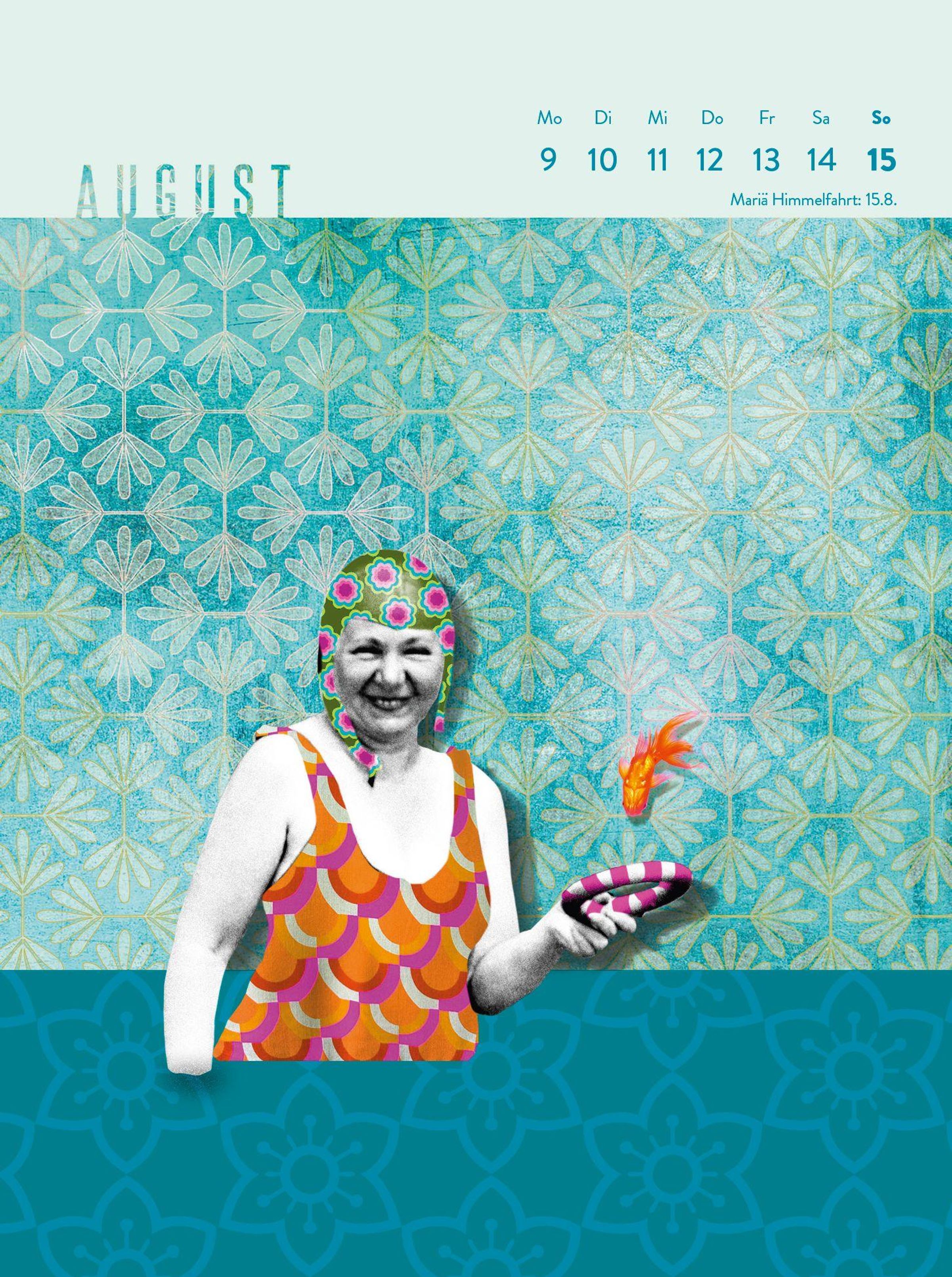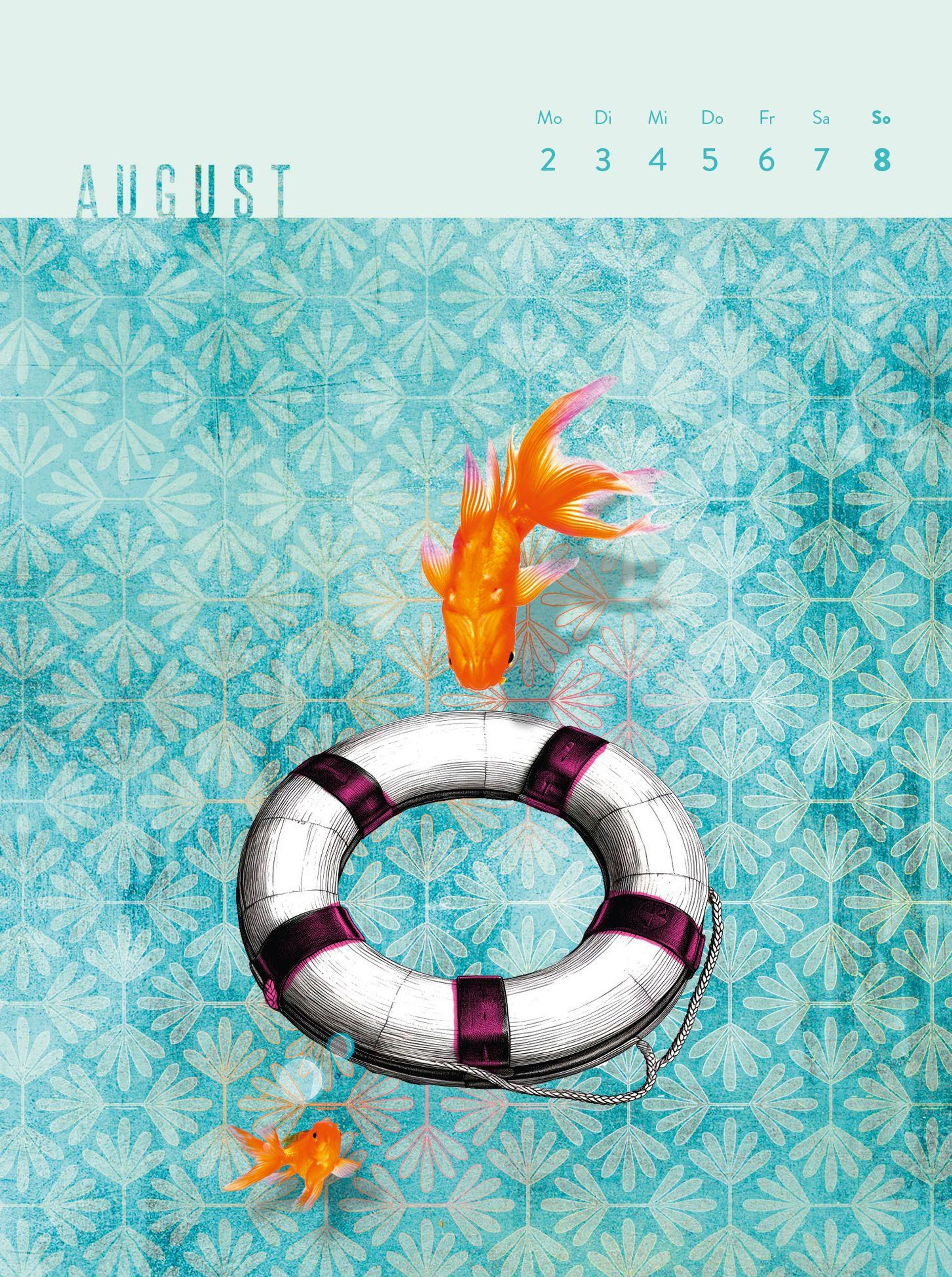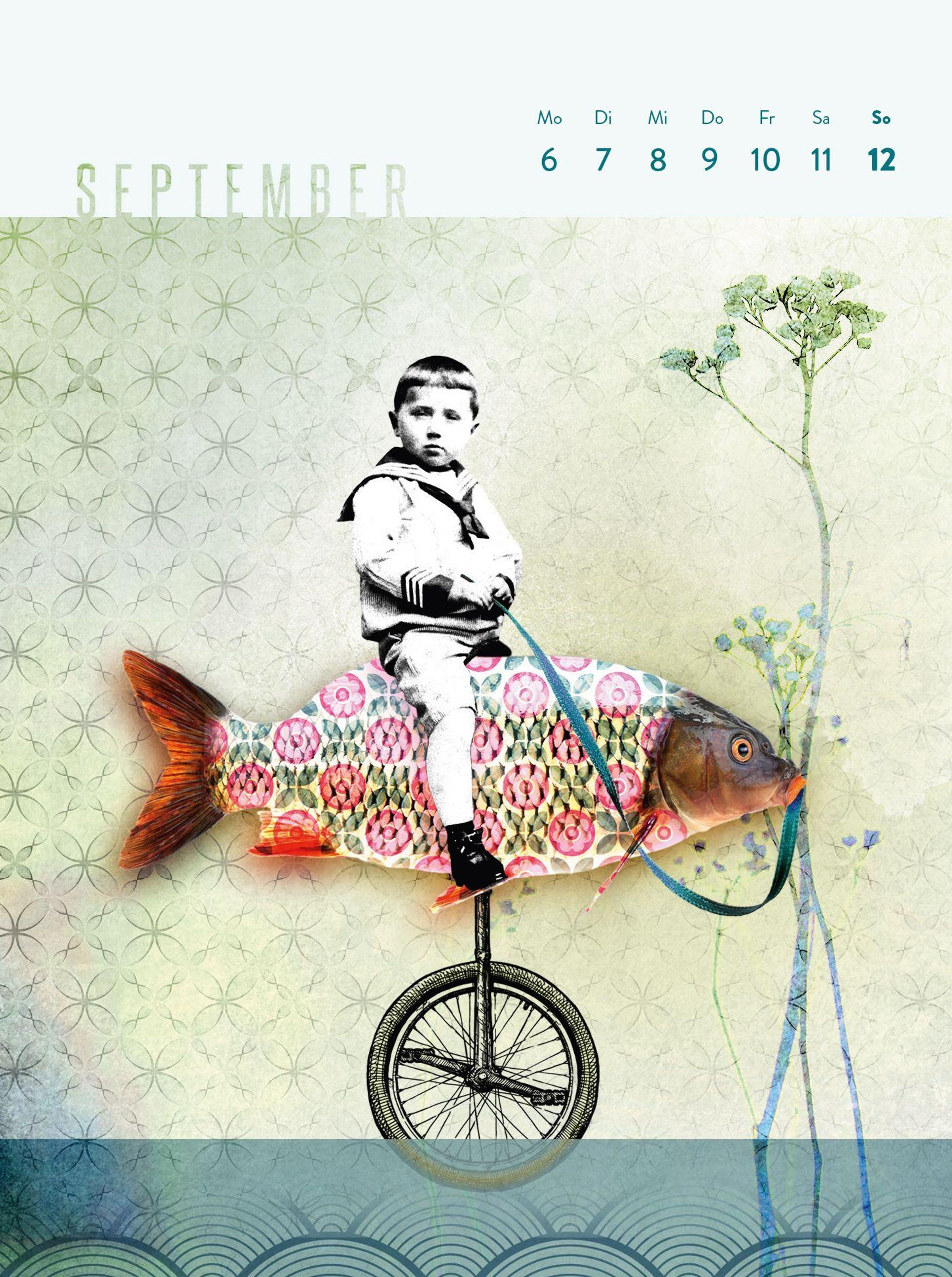 • Illustrierter Aufstellkalender mit verspielten Collagen und Sprüchen über Fantasie und Kreativität. Tischkalender 2025 im Hochformat