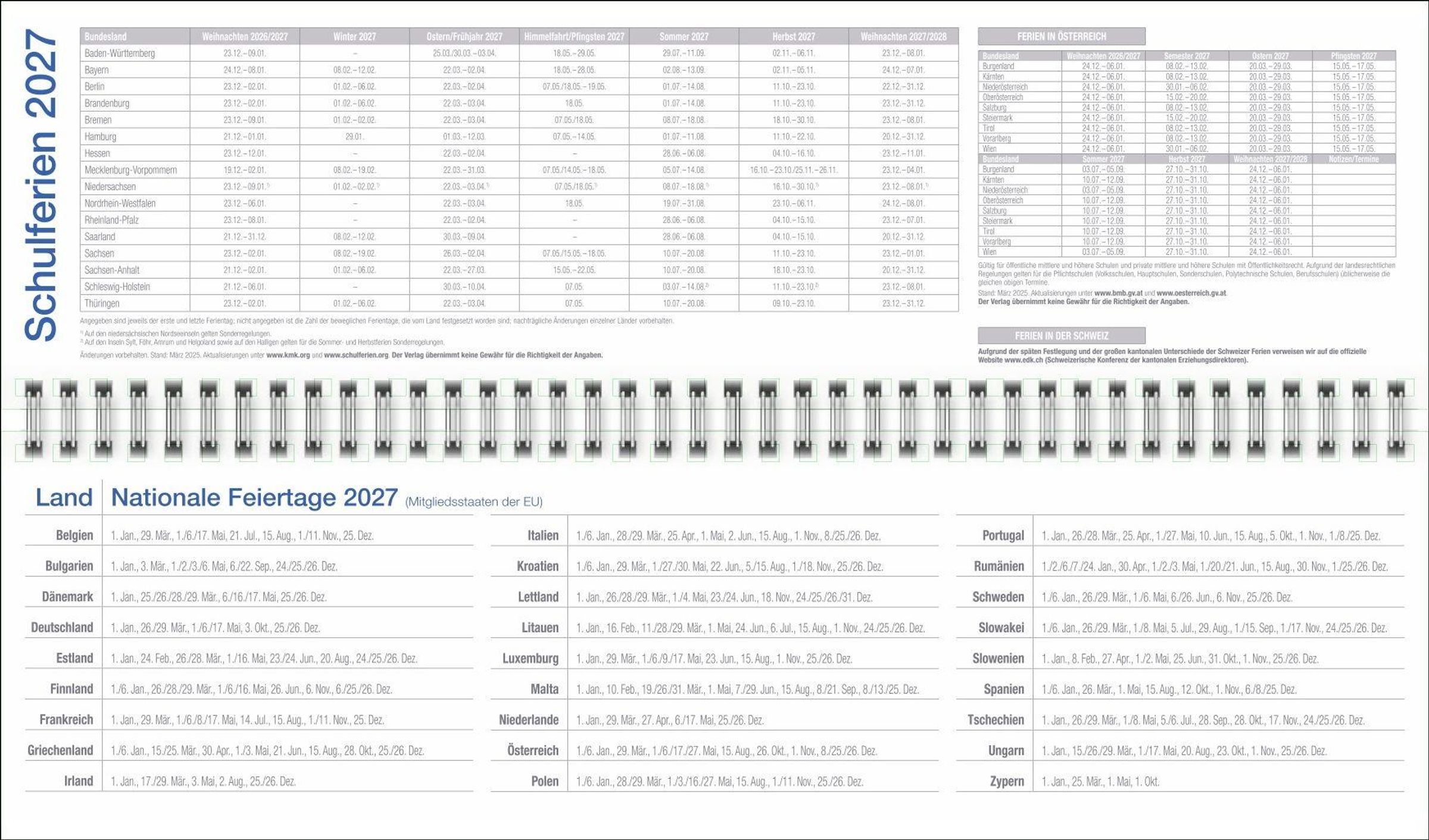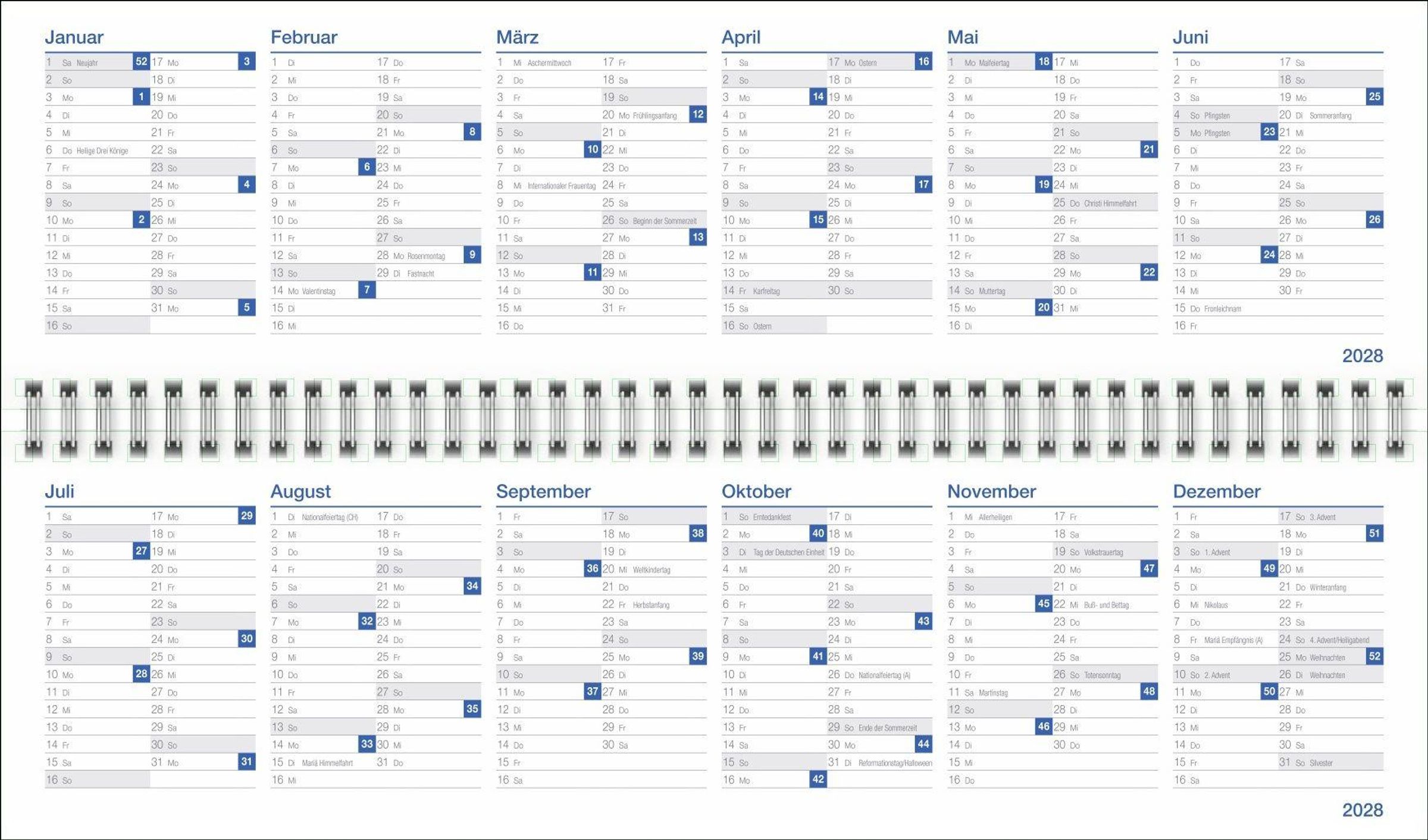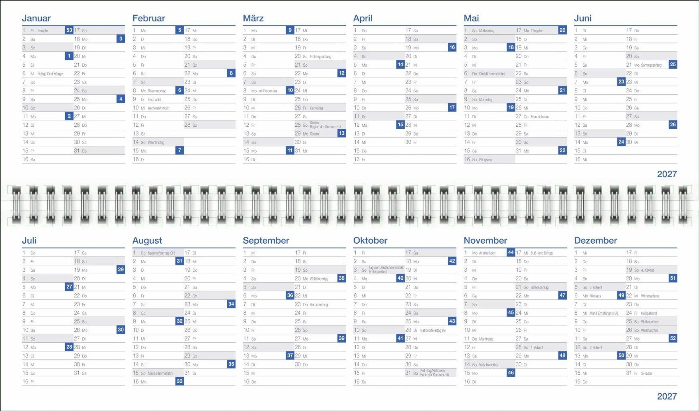 - Praktischer Tischquerkalender zum Umklappen. Zeitloser Spiral-Kalender 2027 fürs Büro. Wochenplaner für den Schreibtisch.